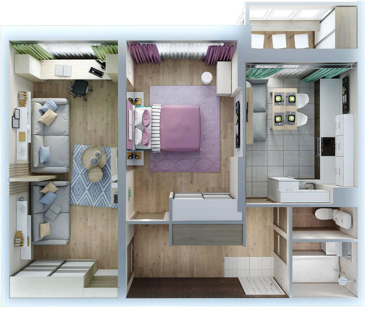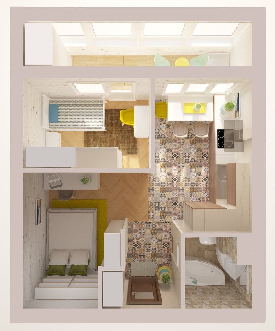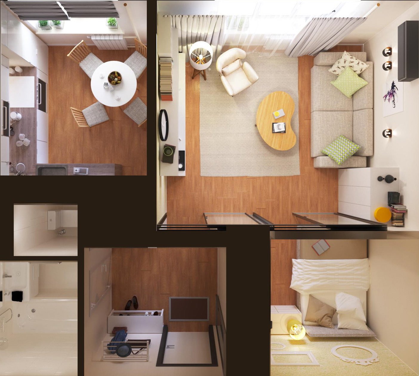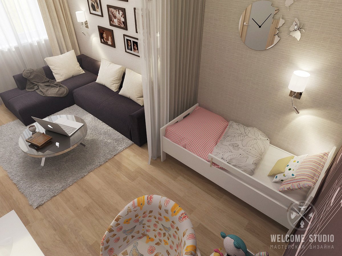 Зонирование однокомнатной квартиры для семьи с 2 детьми