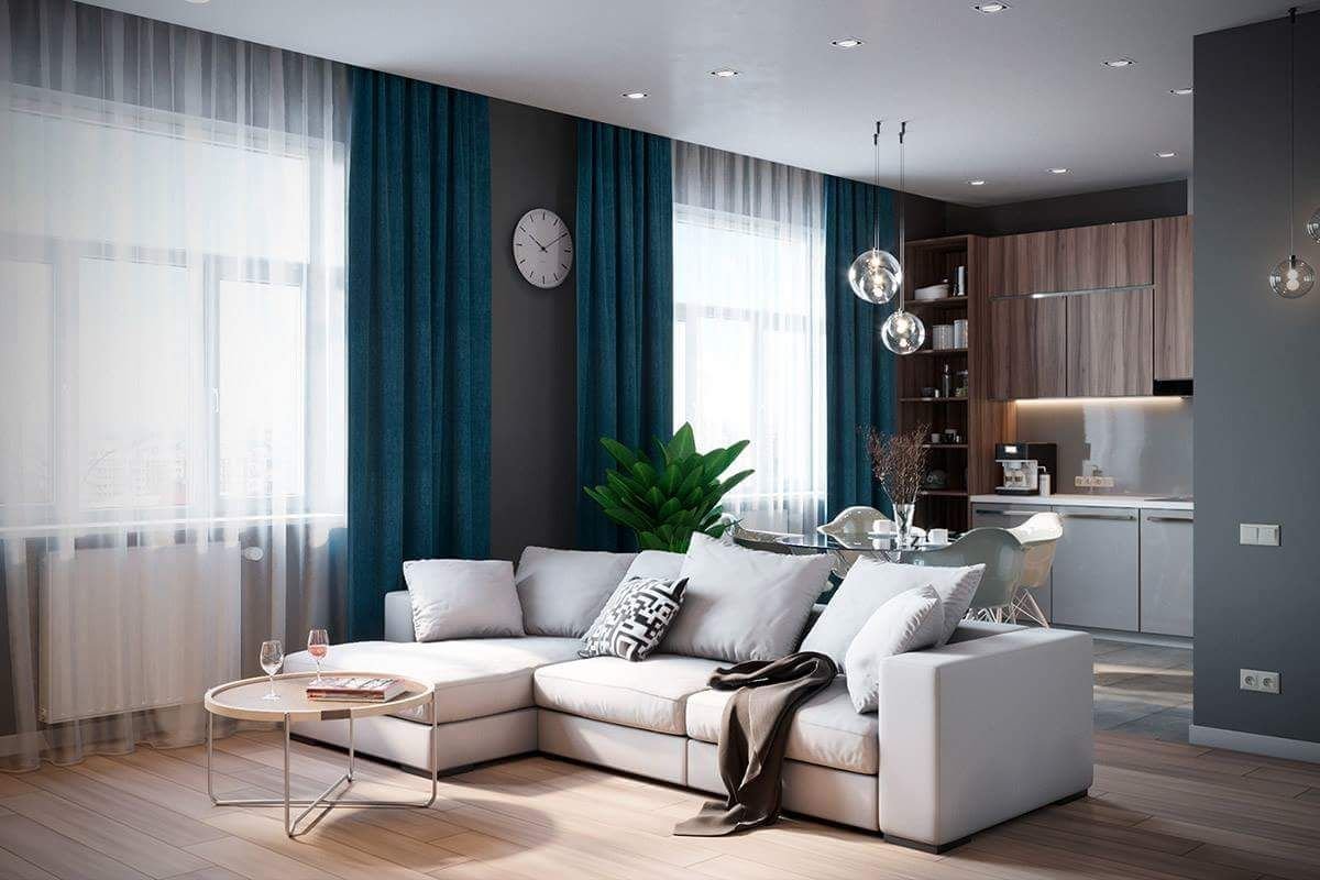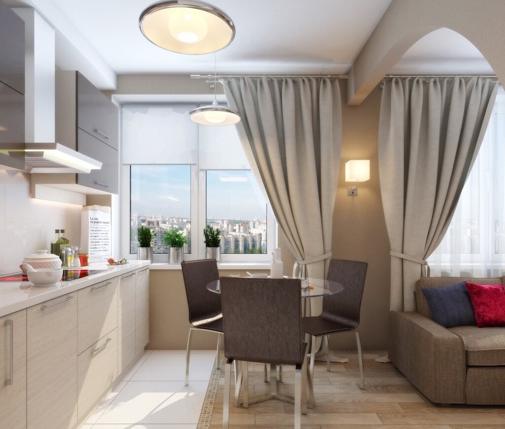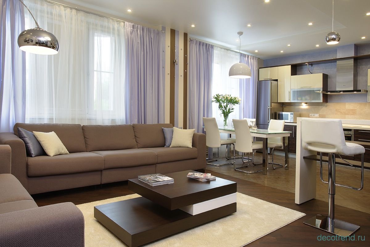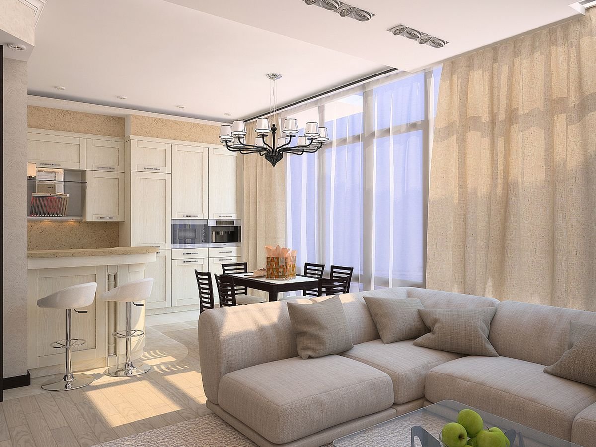 Шторы в гостиную совмещенную с кухней