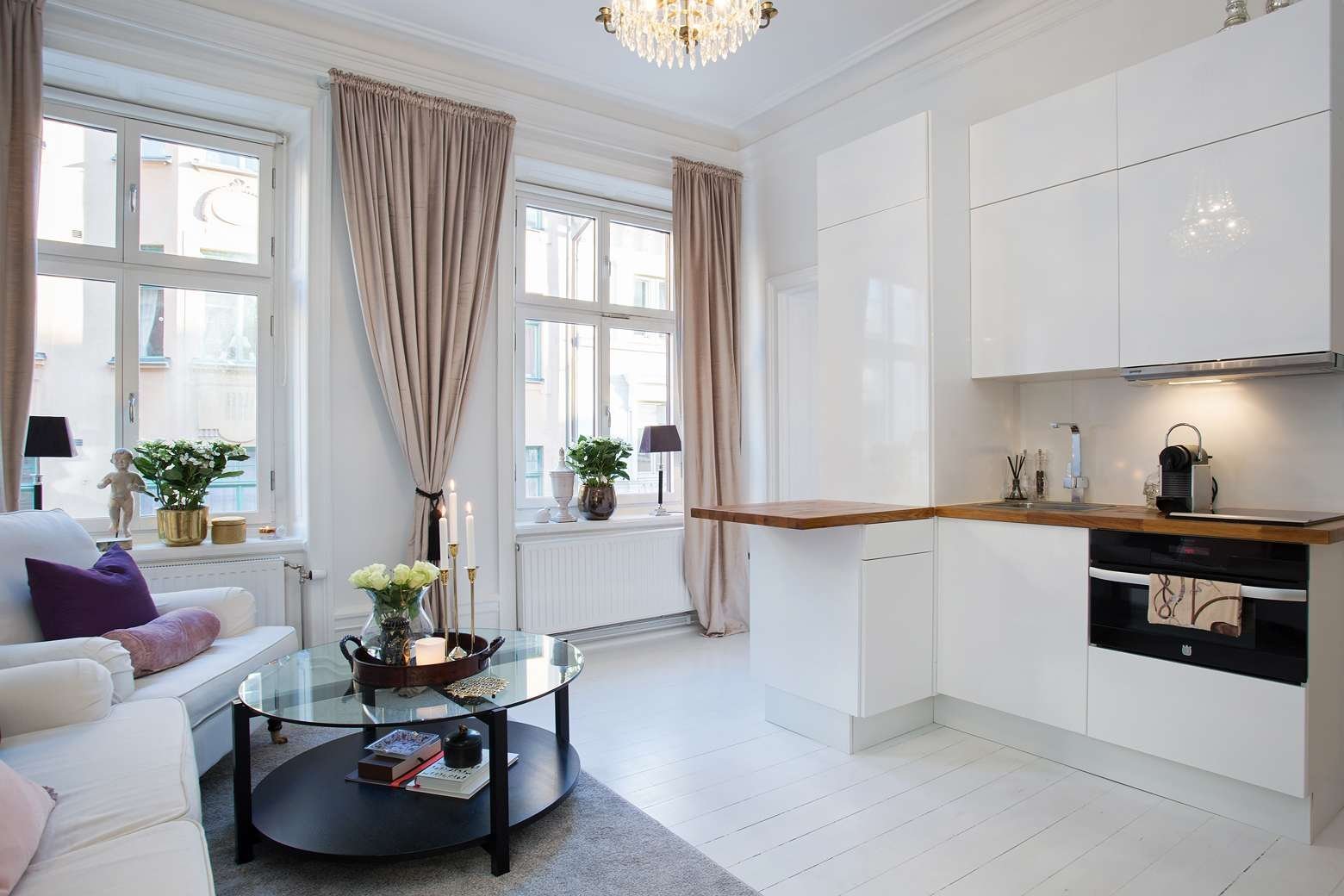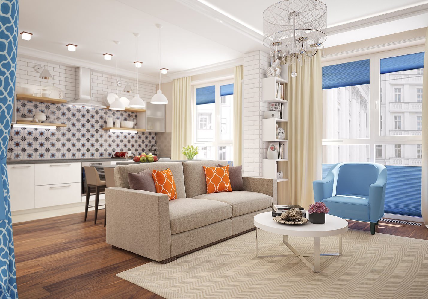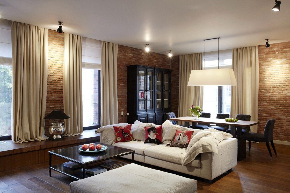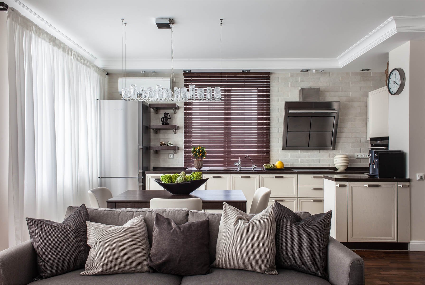 Шторы в гостиную совмещенную с кухней