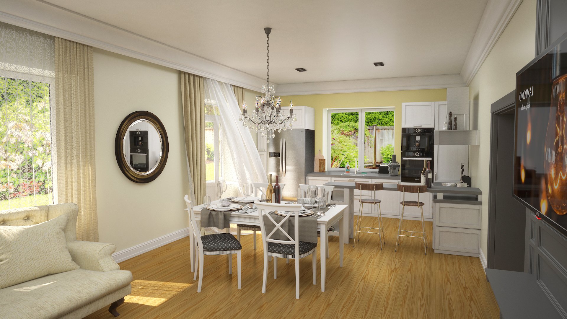 Кухня-столовая-гостиная Неоклассика