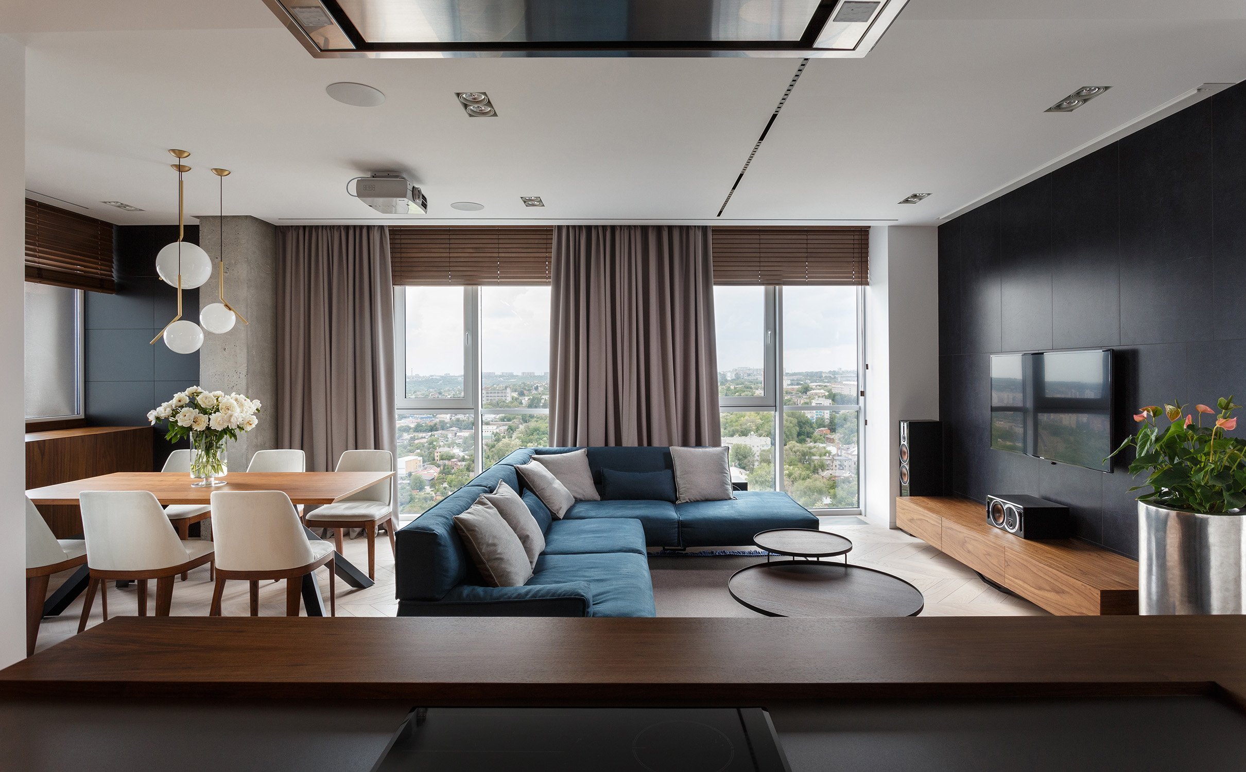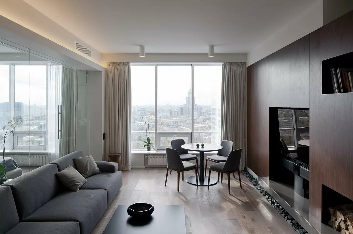 Кухня-гостиная 35 кв.м с панорамным окном
