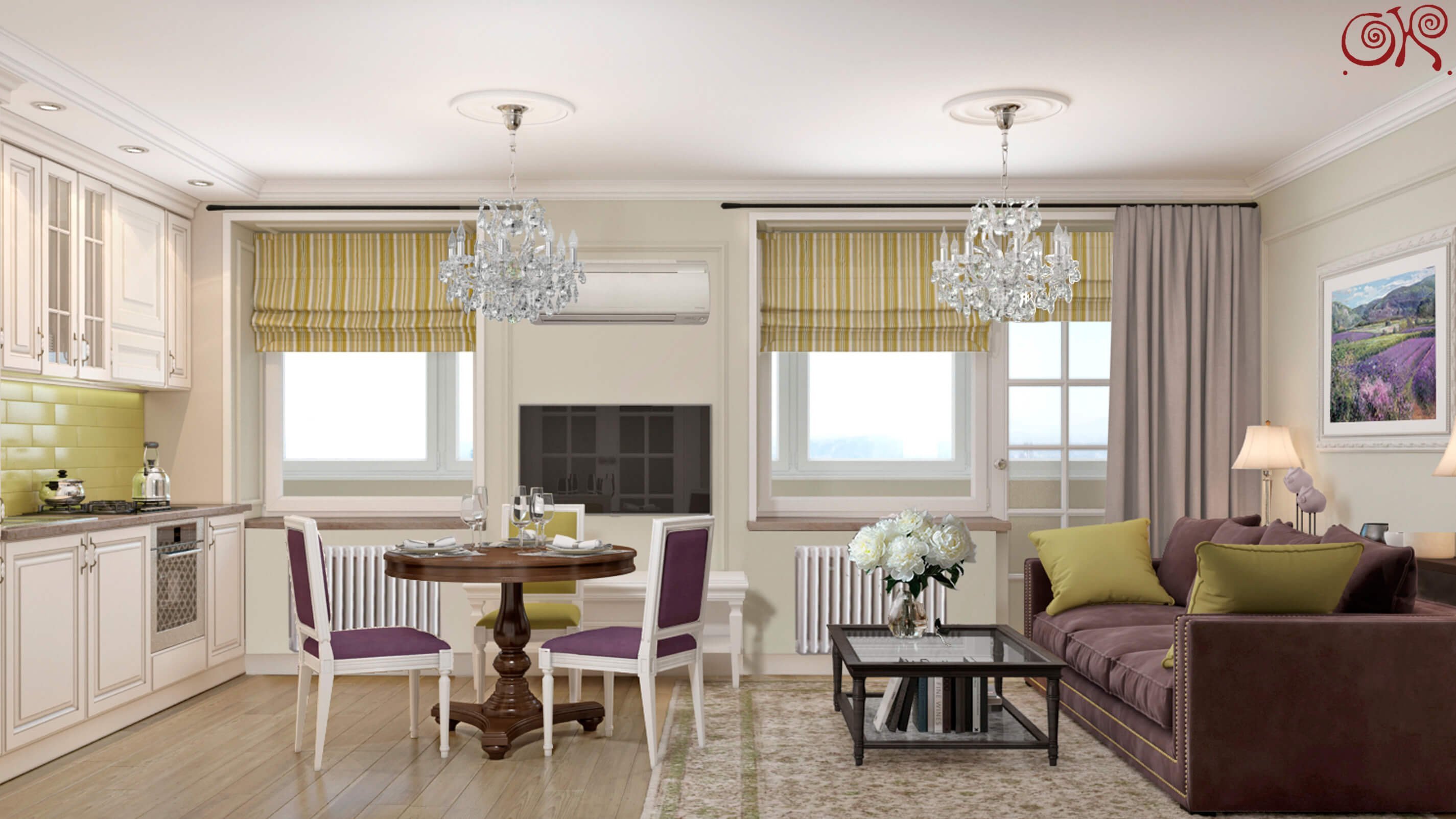 Кухня-гостиная 20 кв.м с двумя окнами