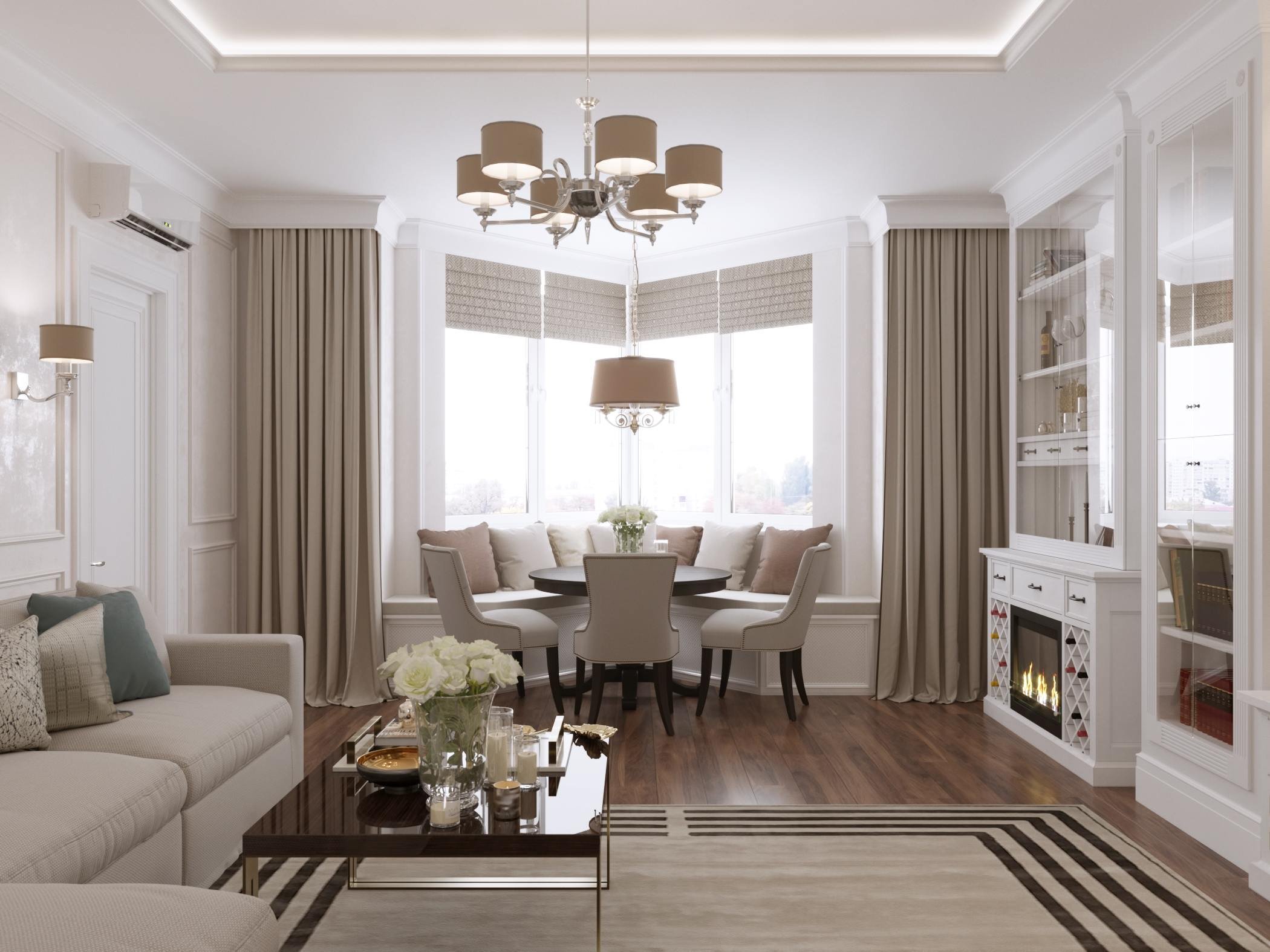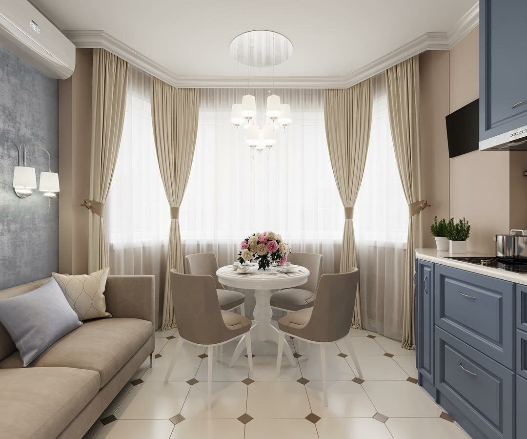 Кухня гостиная столовая с эркером 30 кв м