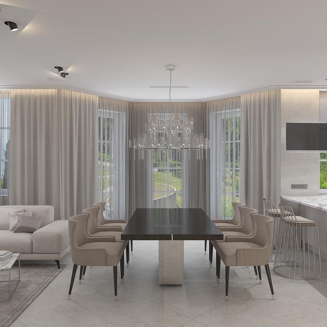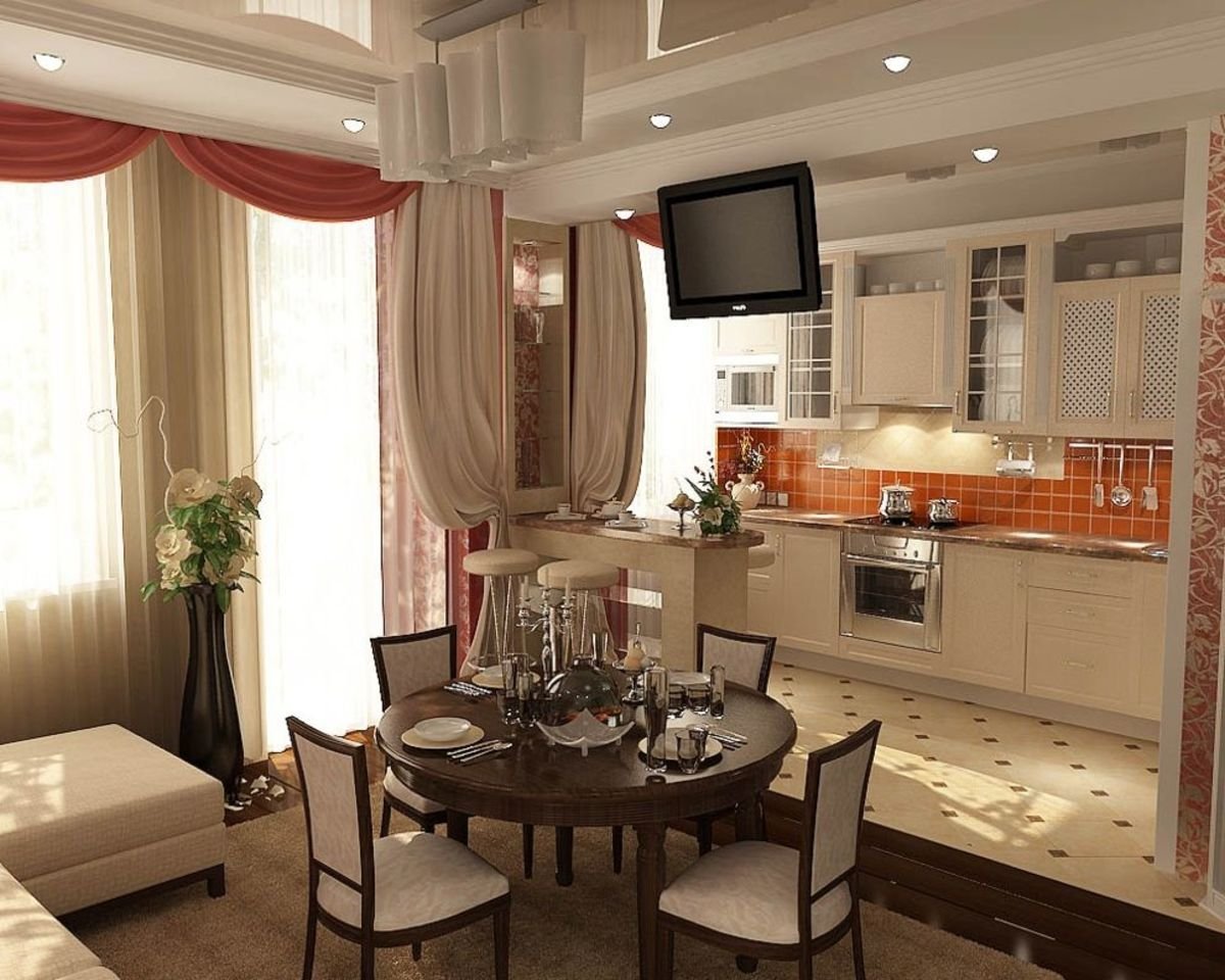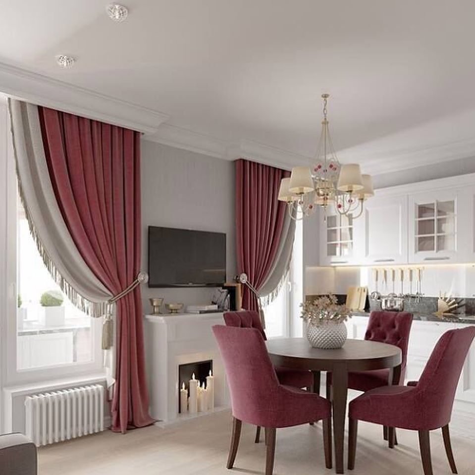 Шторы в интерьере кухни гостиной