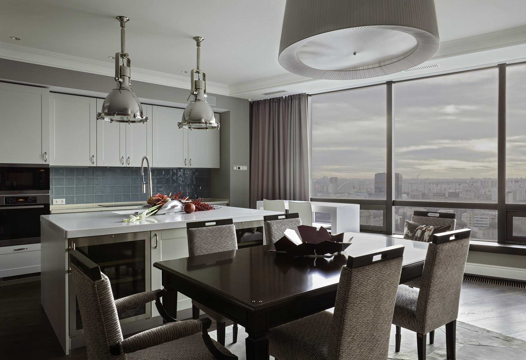 Кухня столовая с панорамными окнами