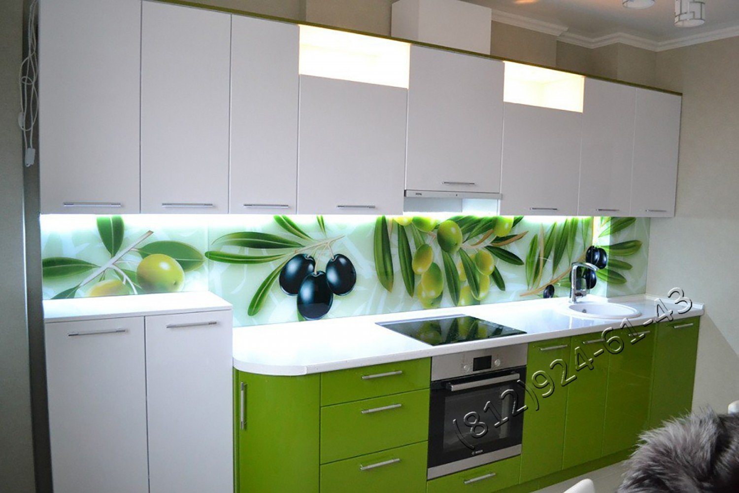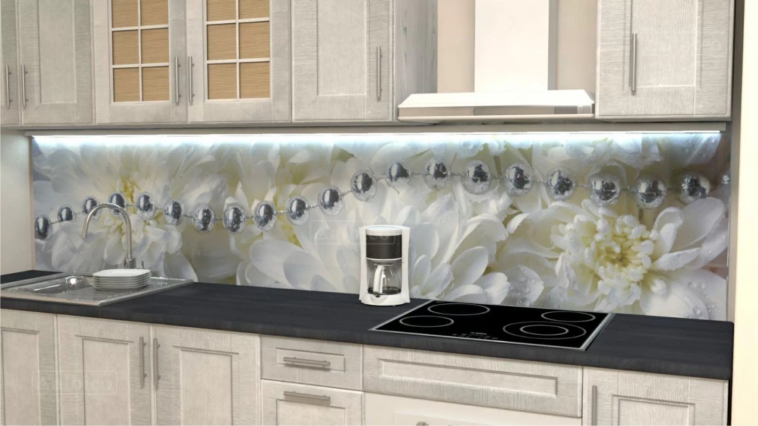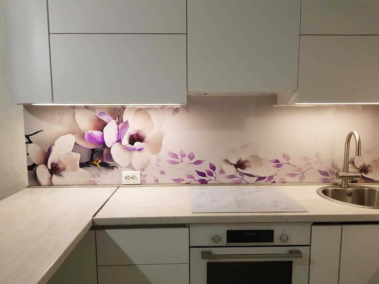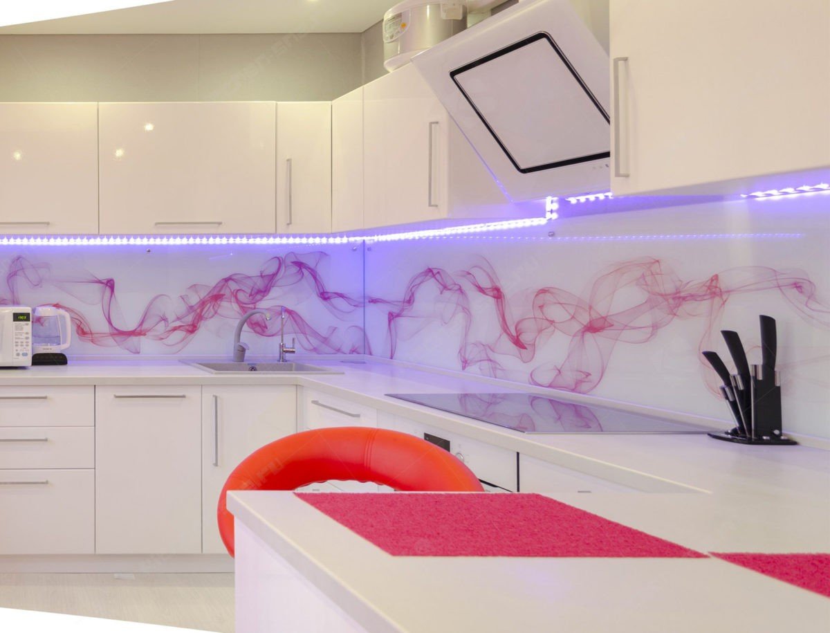Стеклянный фартук для кухни с подсветкой