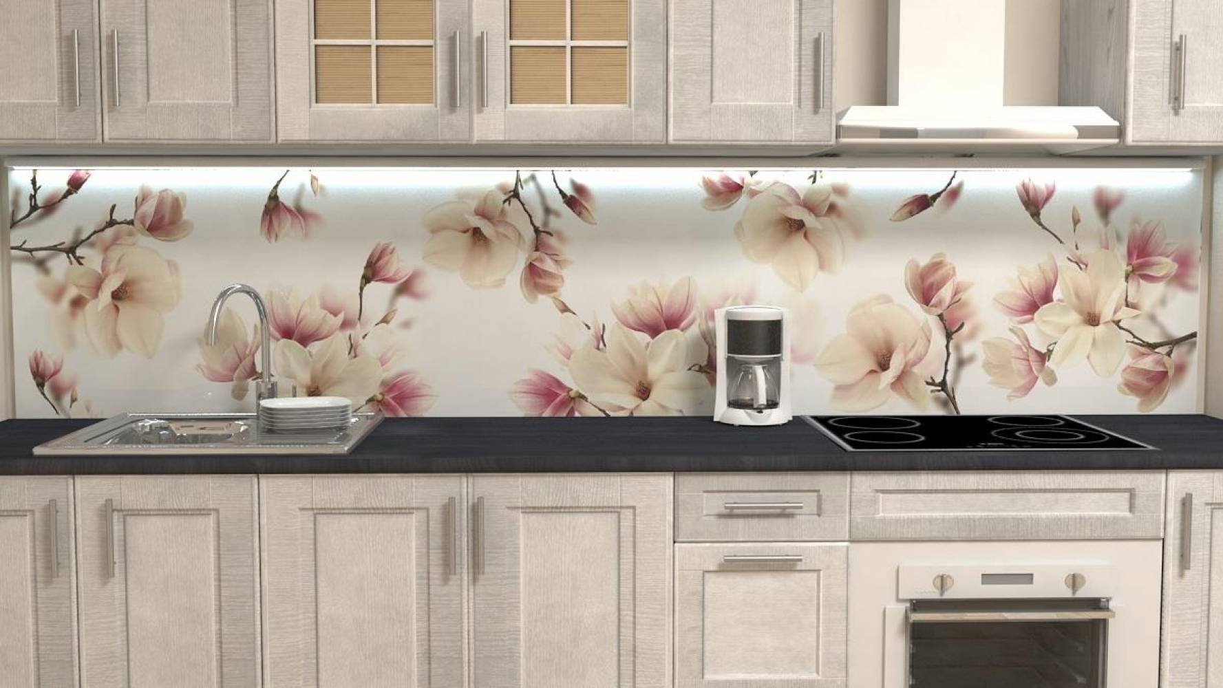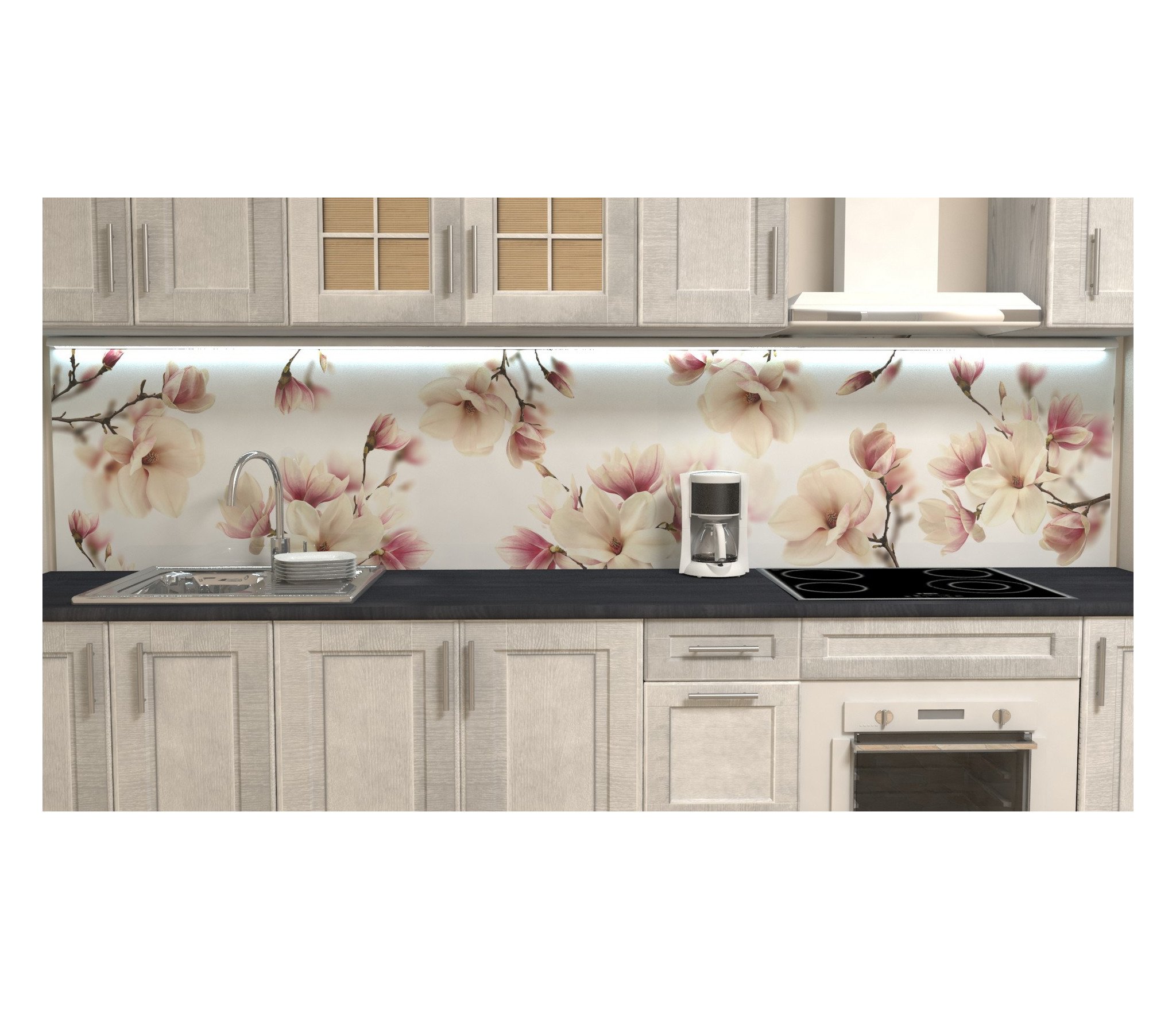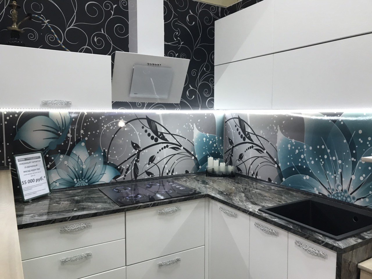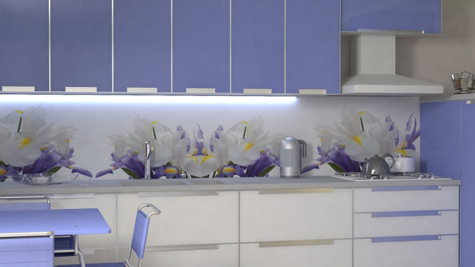 Стеклянный фартук для кухни с подсветкой