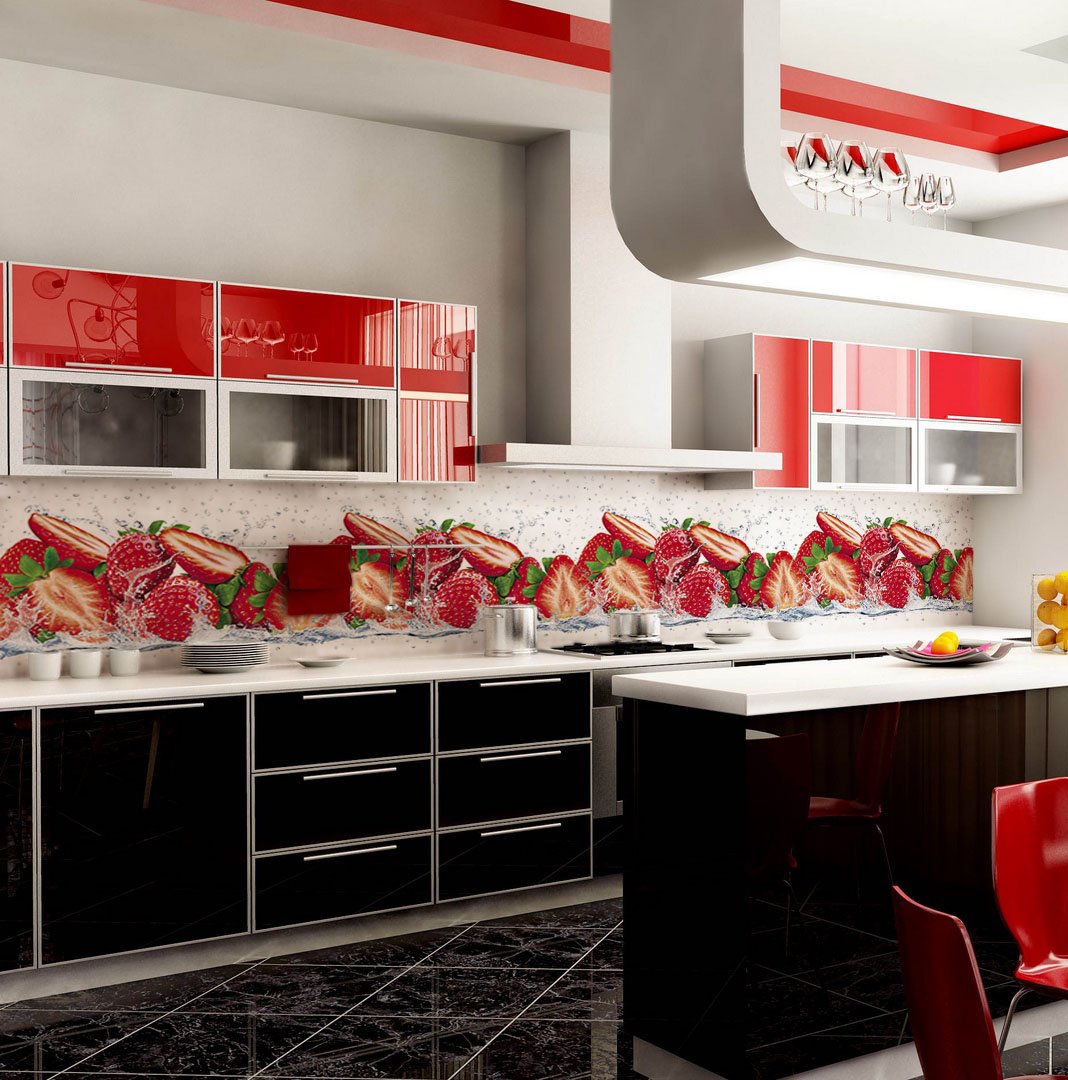 Стеновые панели для красной кухни фартук