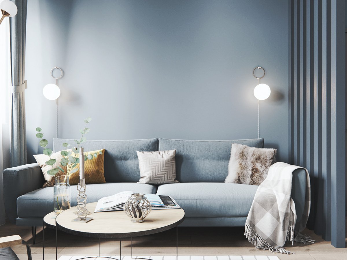 Пыльный голубой в интерьере