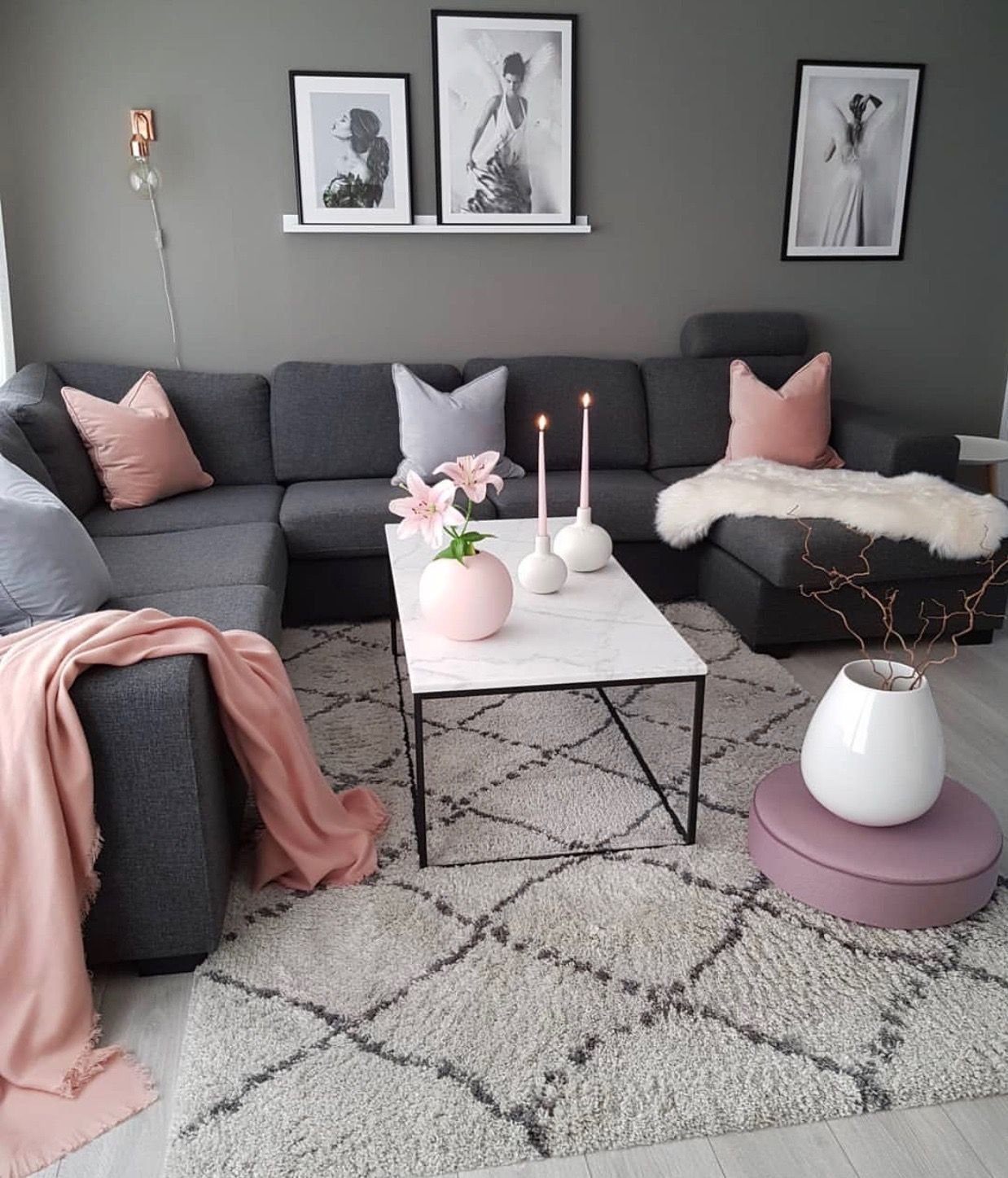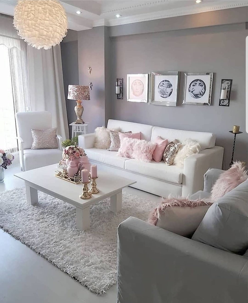 Серый с розовым в интерьере