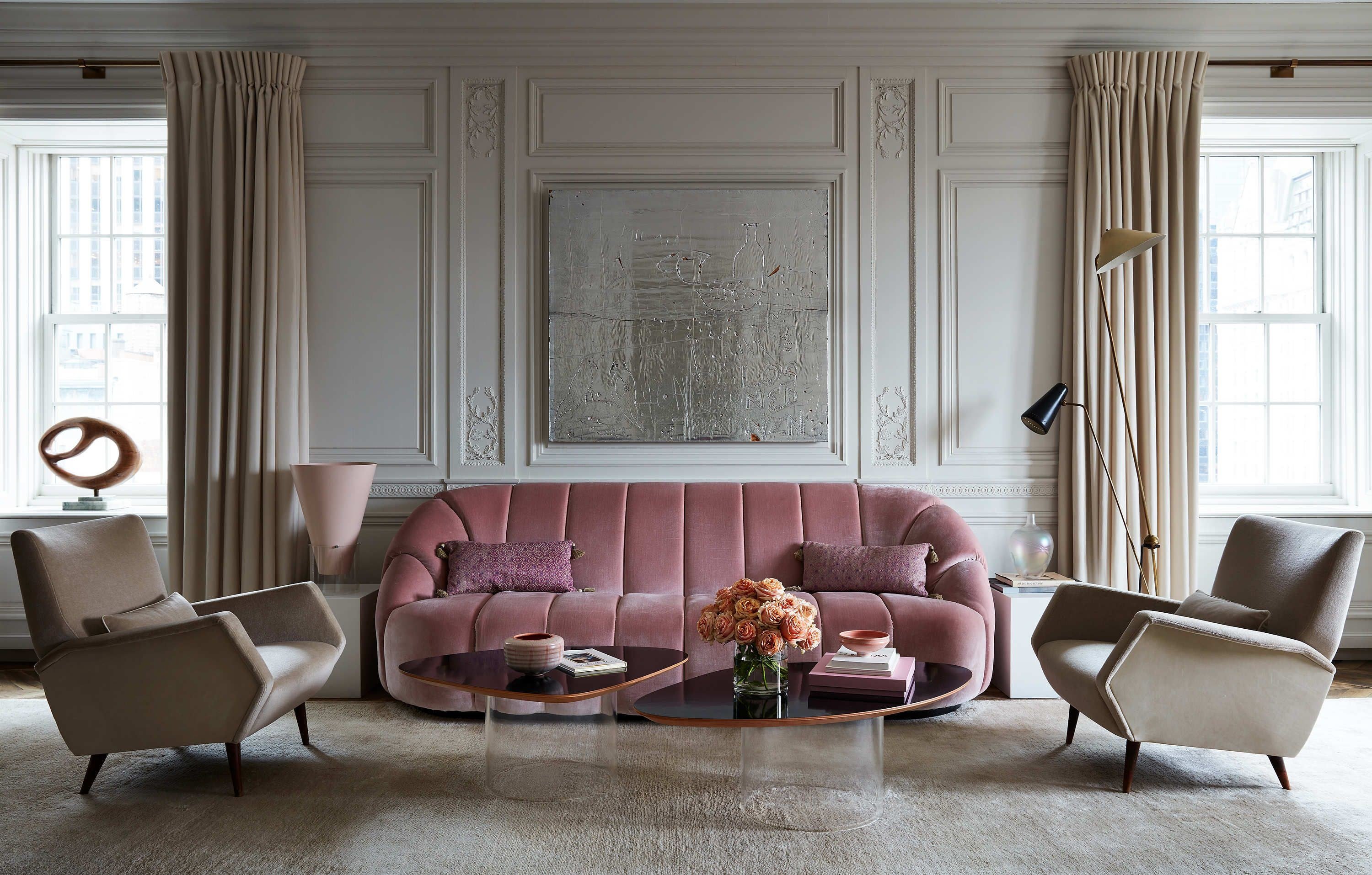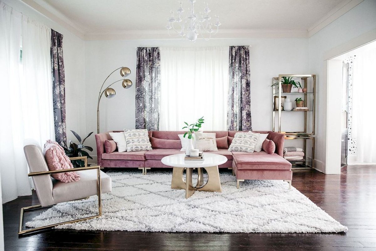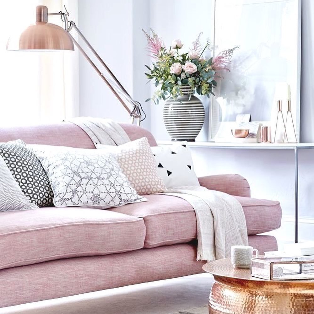 Розовый диван в интерьере