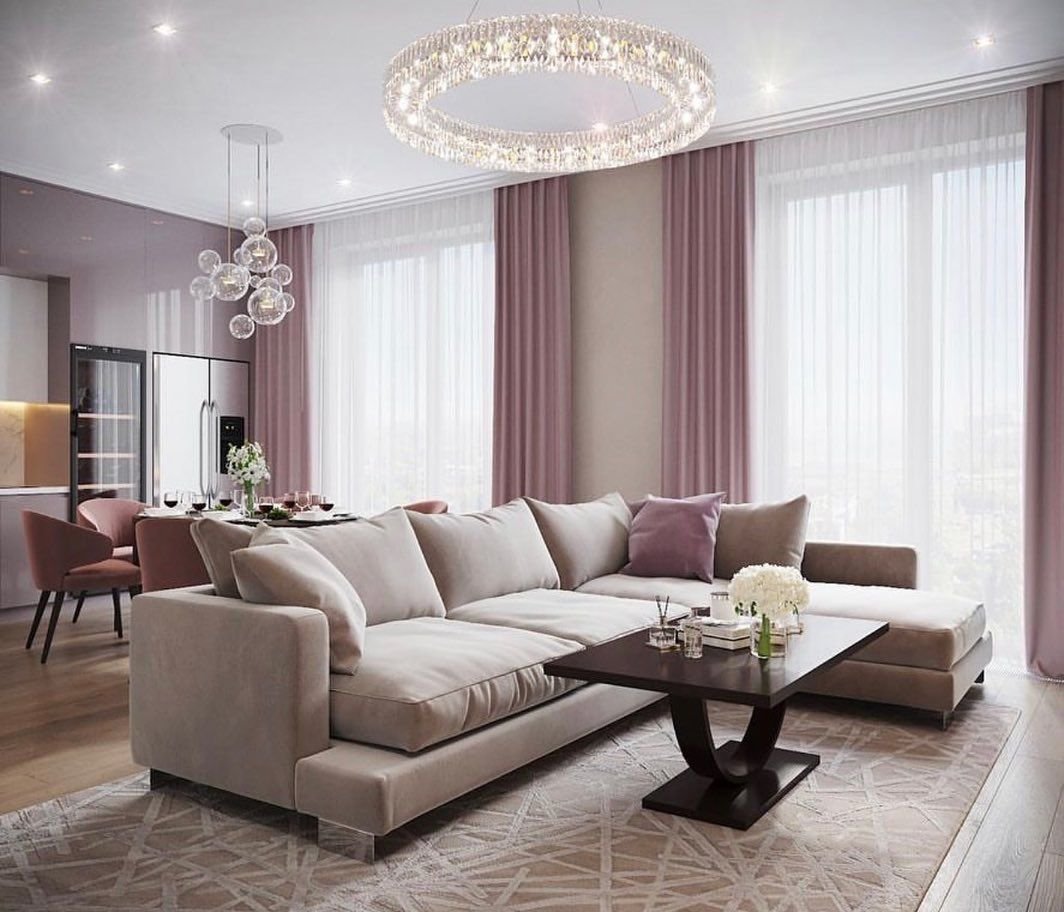 Розовый цвет в интерьере гостиной