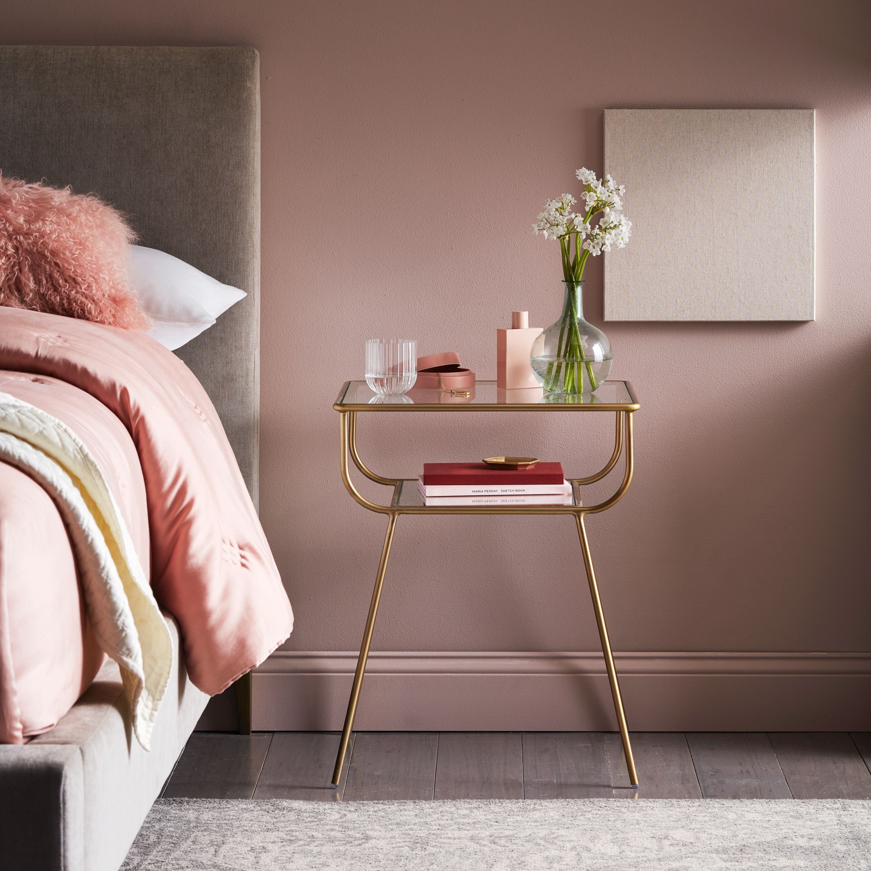Спальня в пыльно розовых тонах