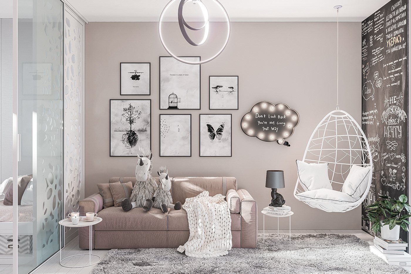 Серо-розовый интерьер
