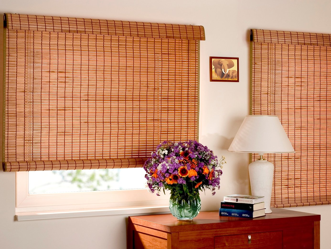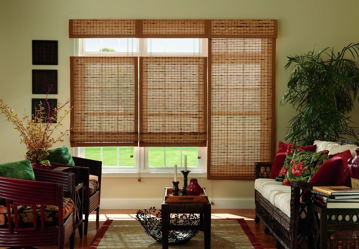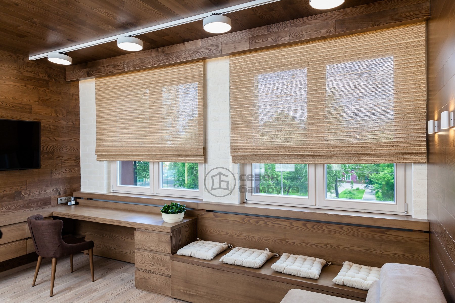 Рулонки римские бамбук в интерьере