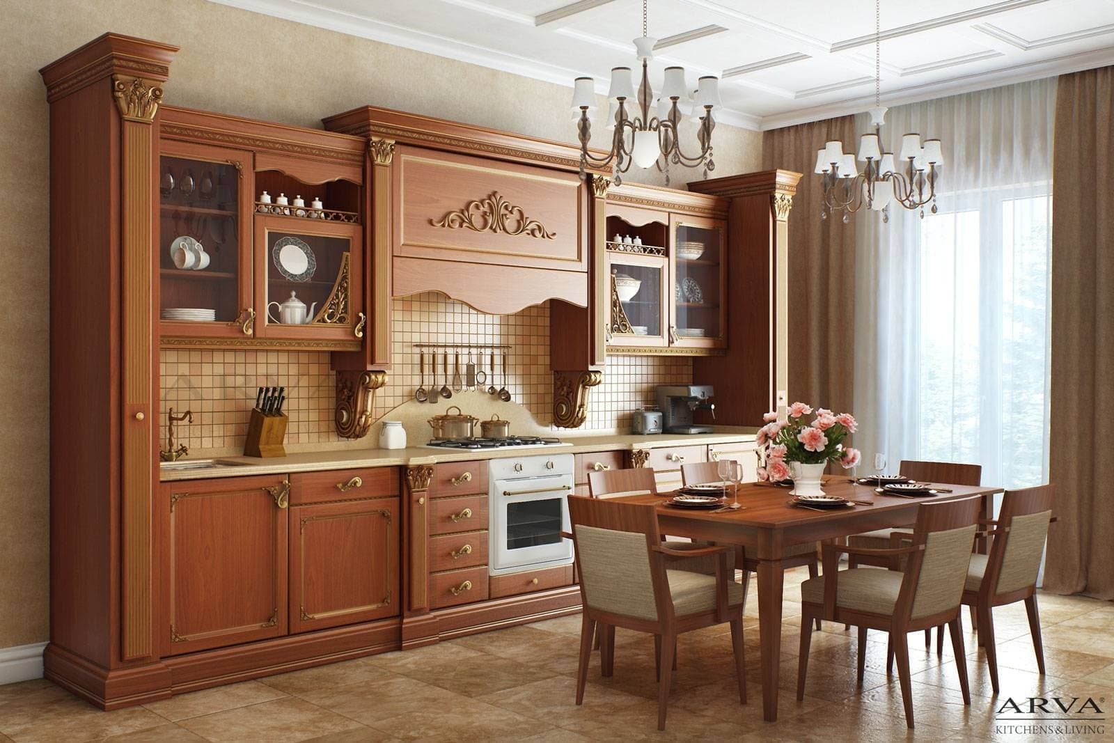 Кухня в классическом стиле коричневая