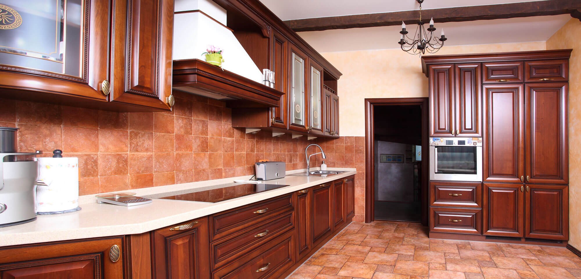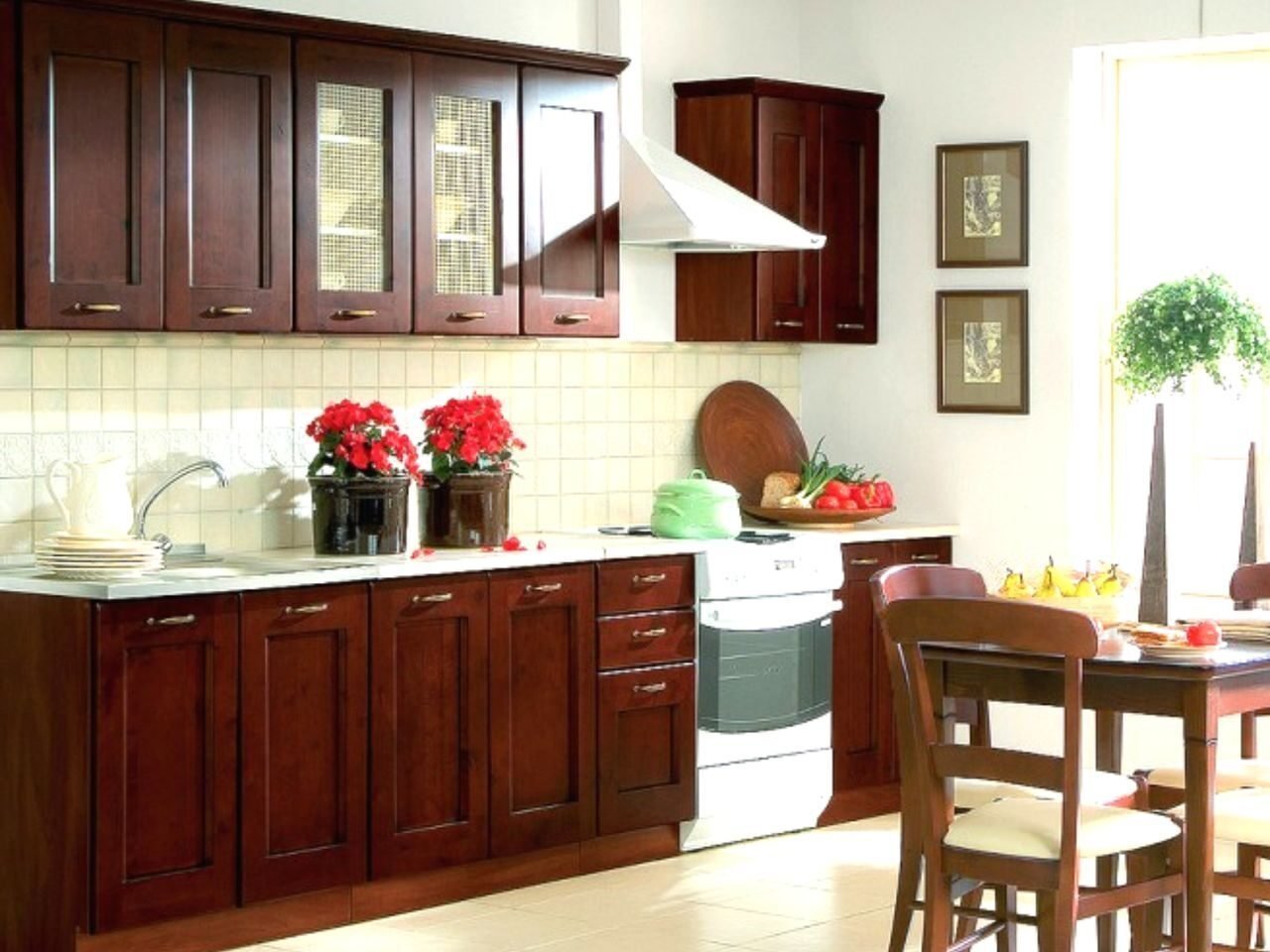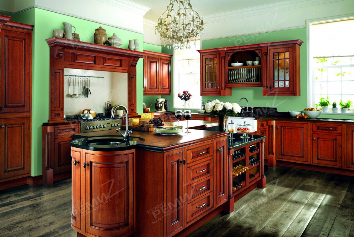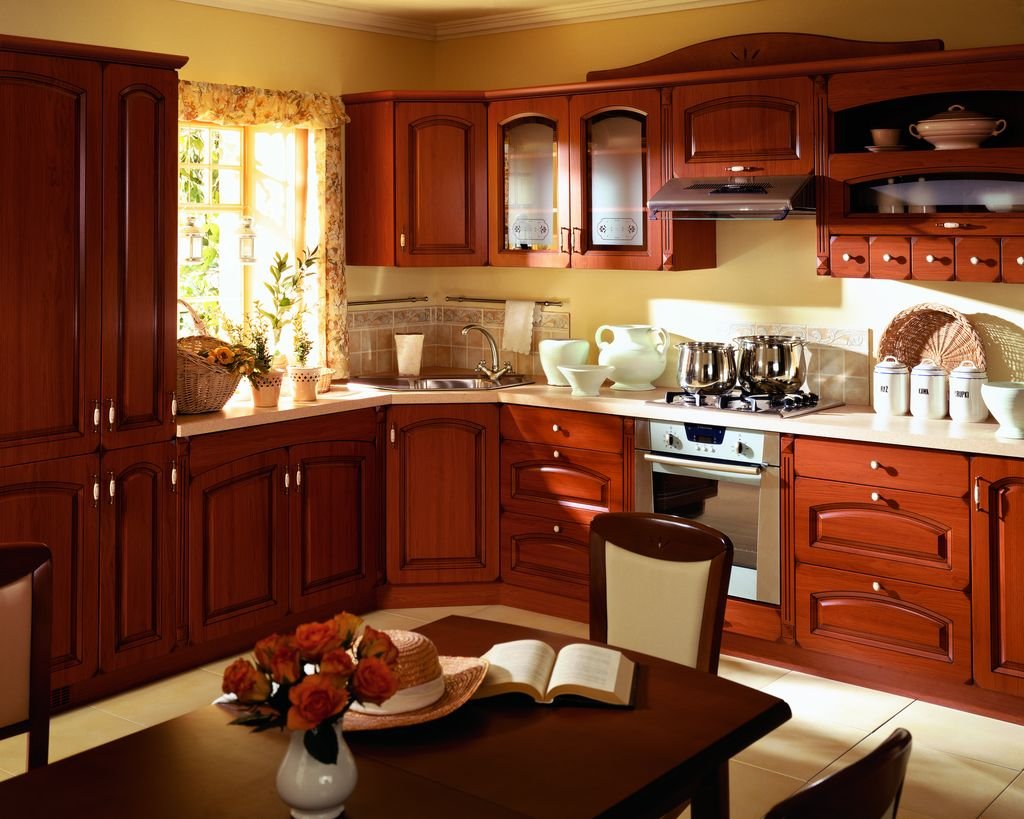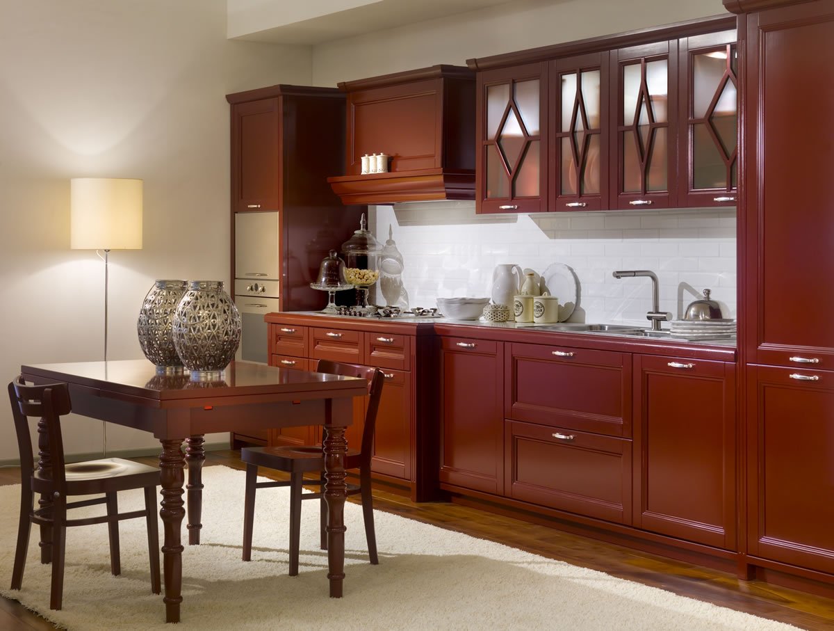Кухня красное дерево