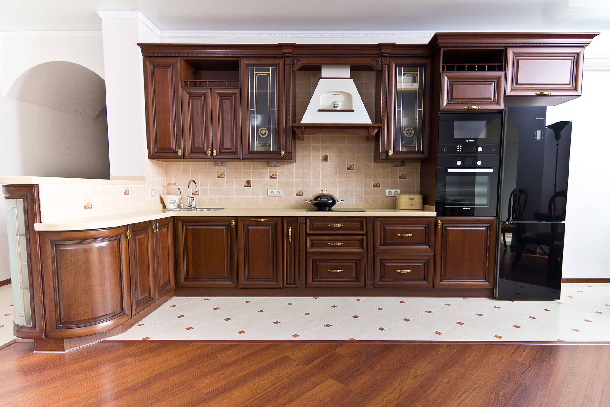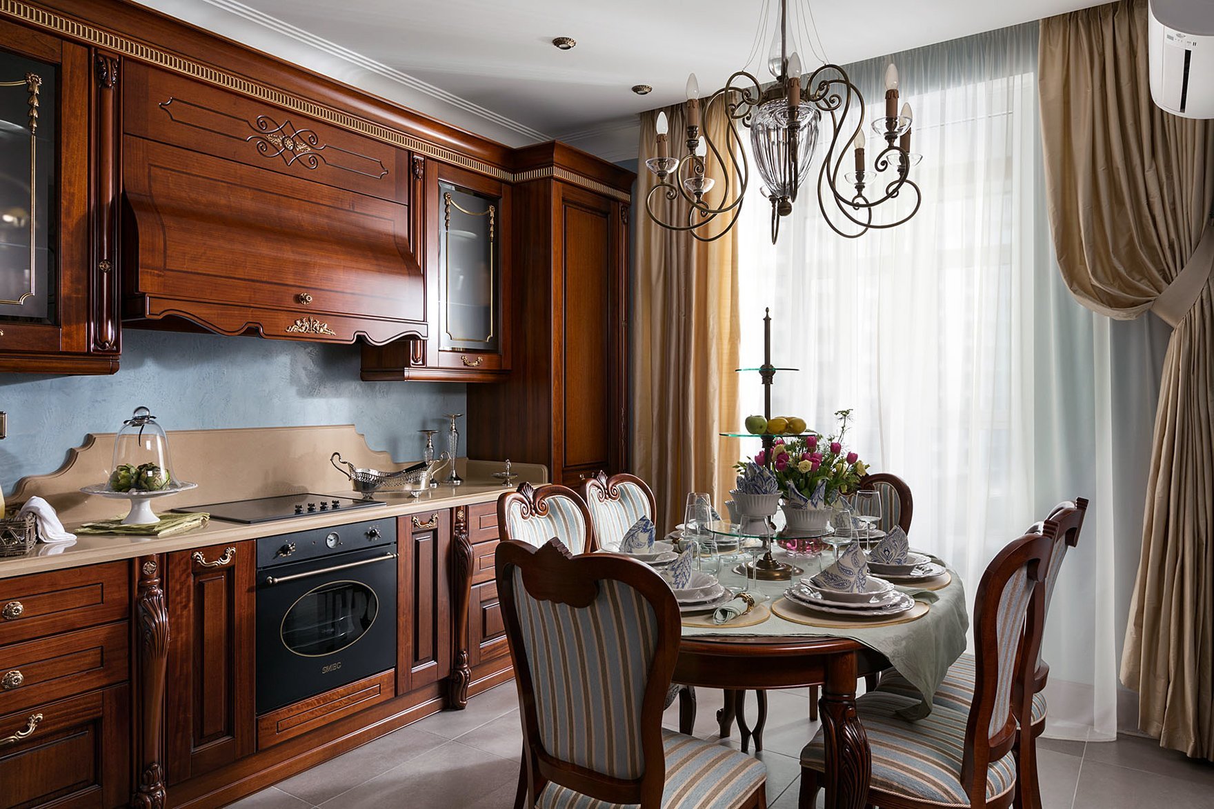 Интерьер кухни в классическом стиле в цвете вишня