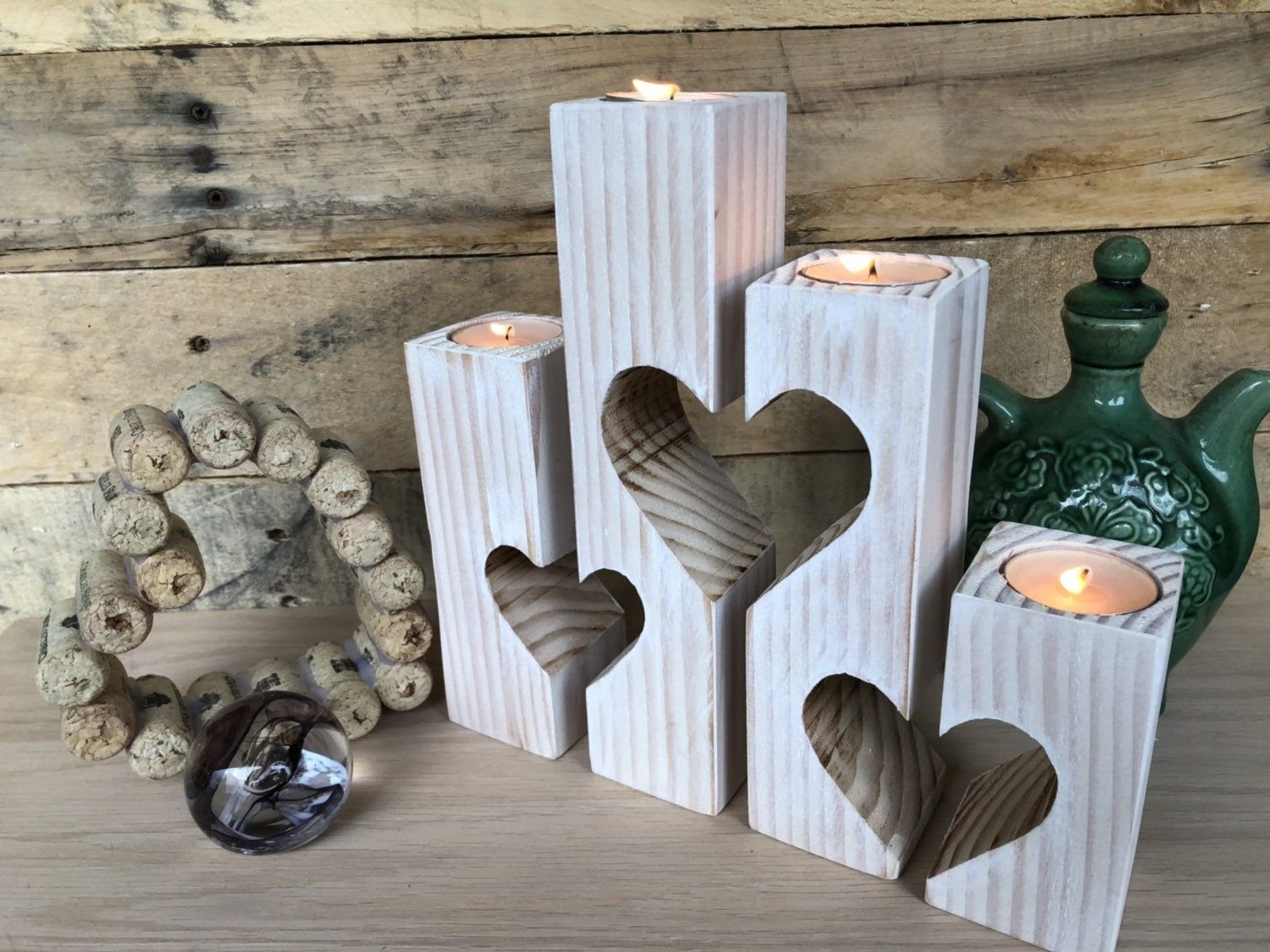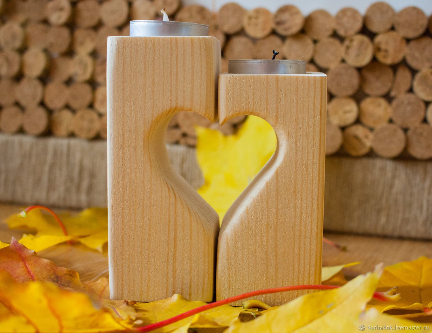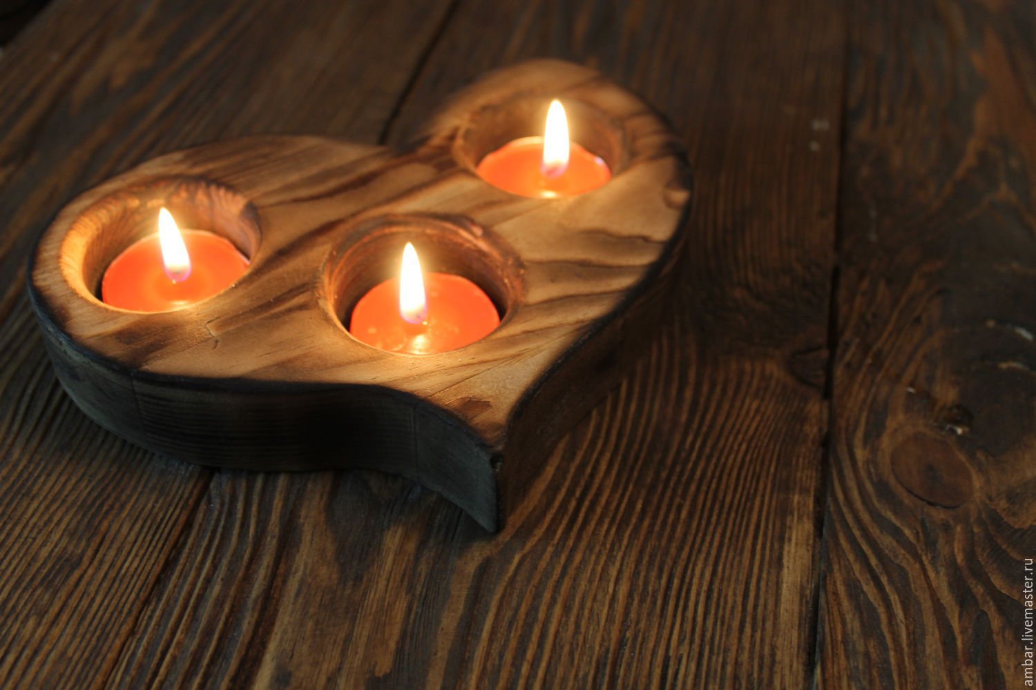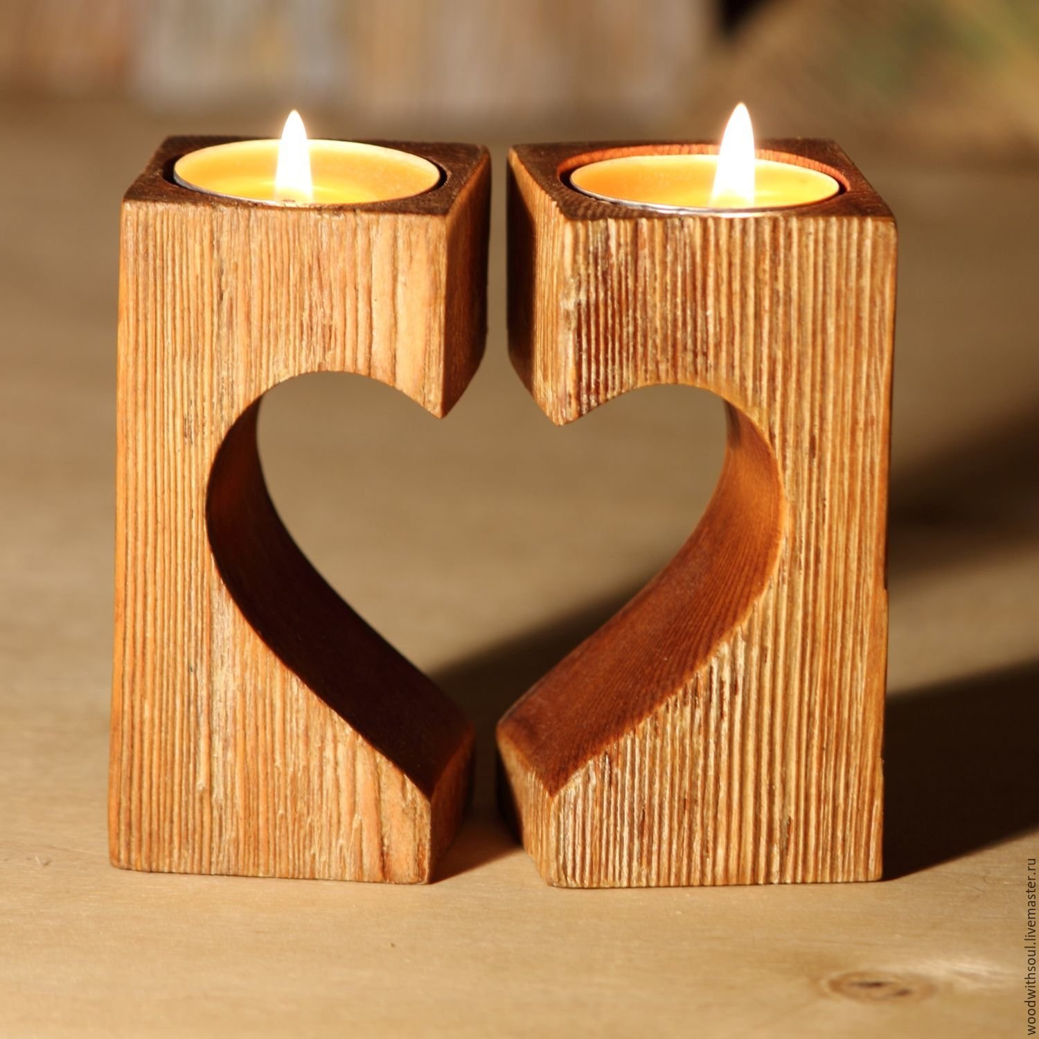 Подсвечник сердце из дерева