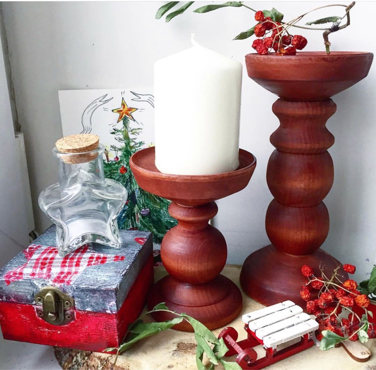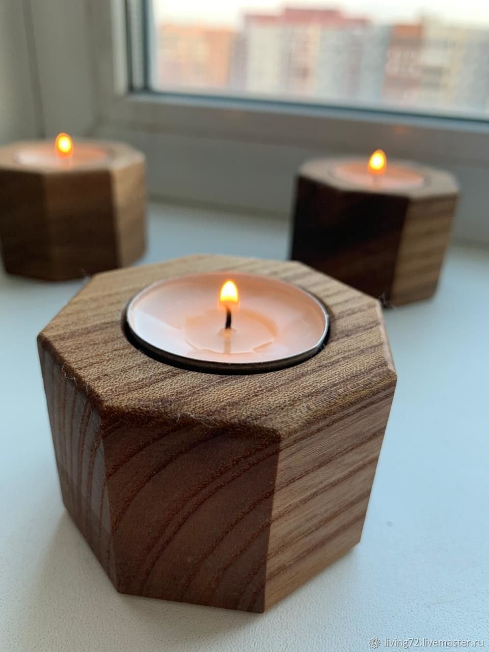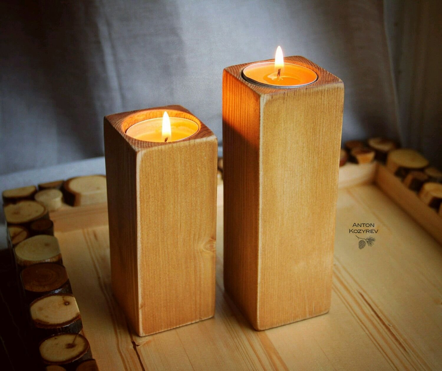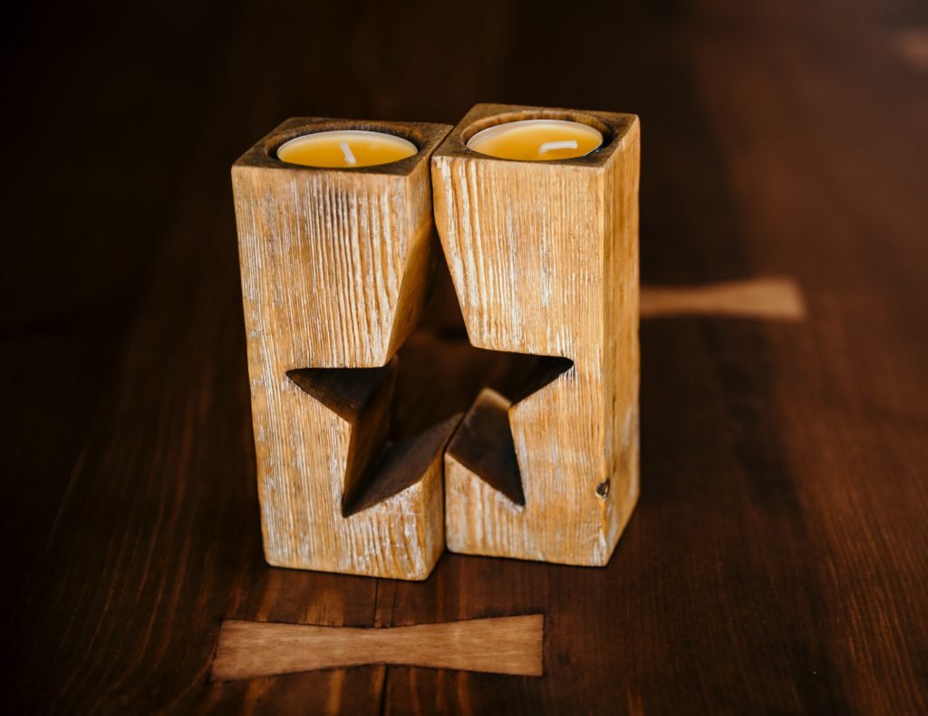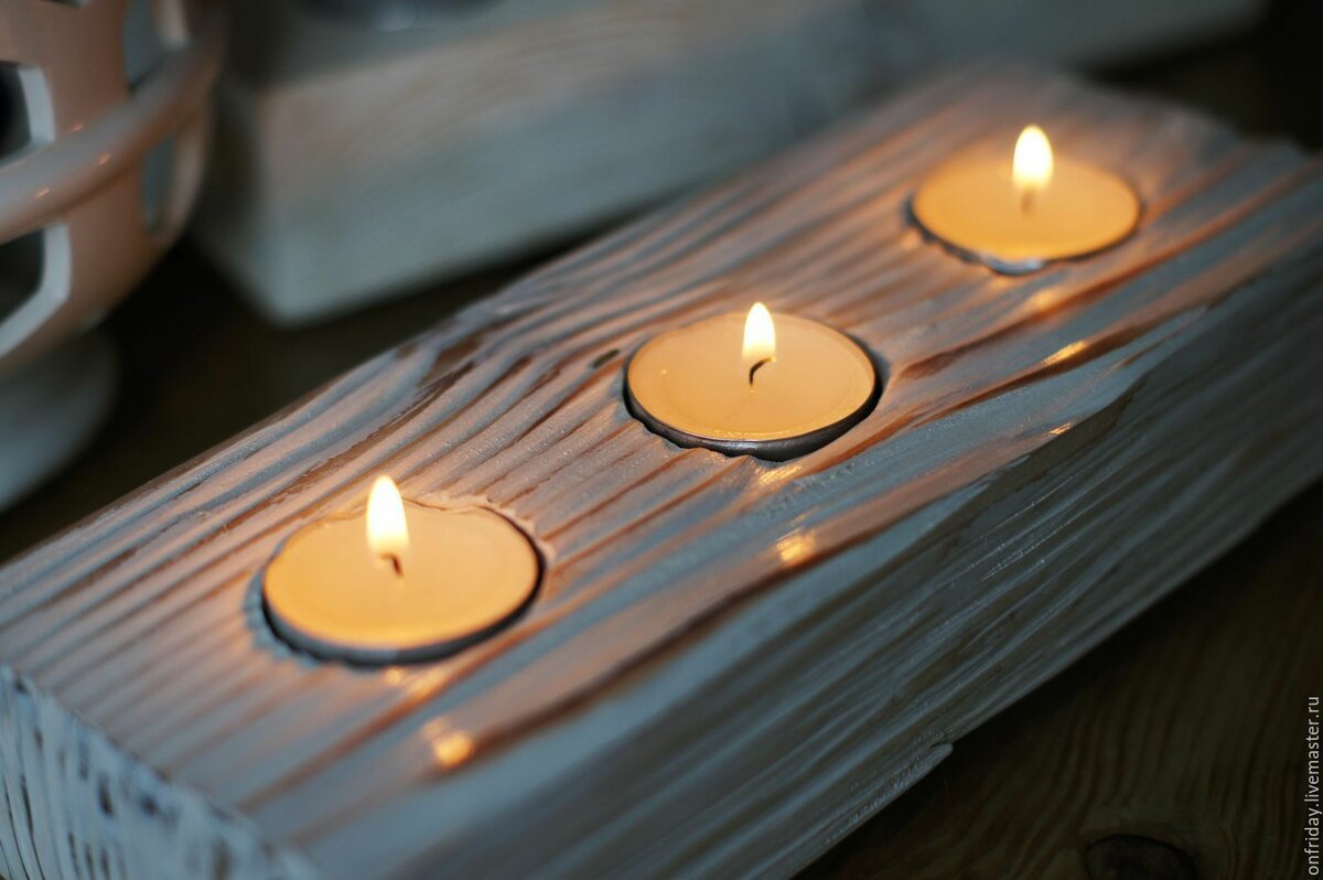 Свечи в деревянных подсвечниках