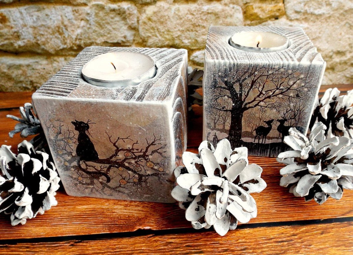 Декоративные подсвечники из дерева