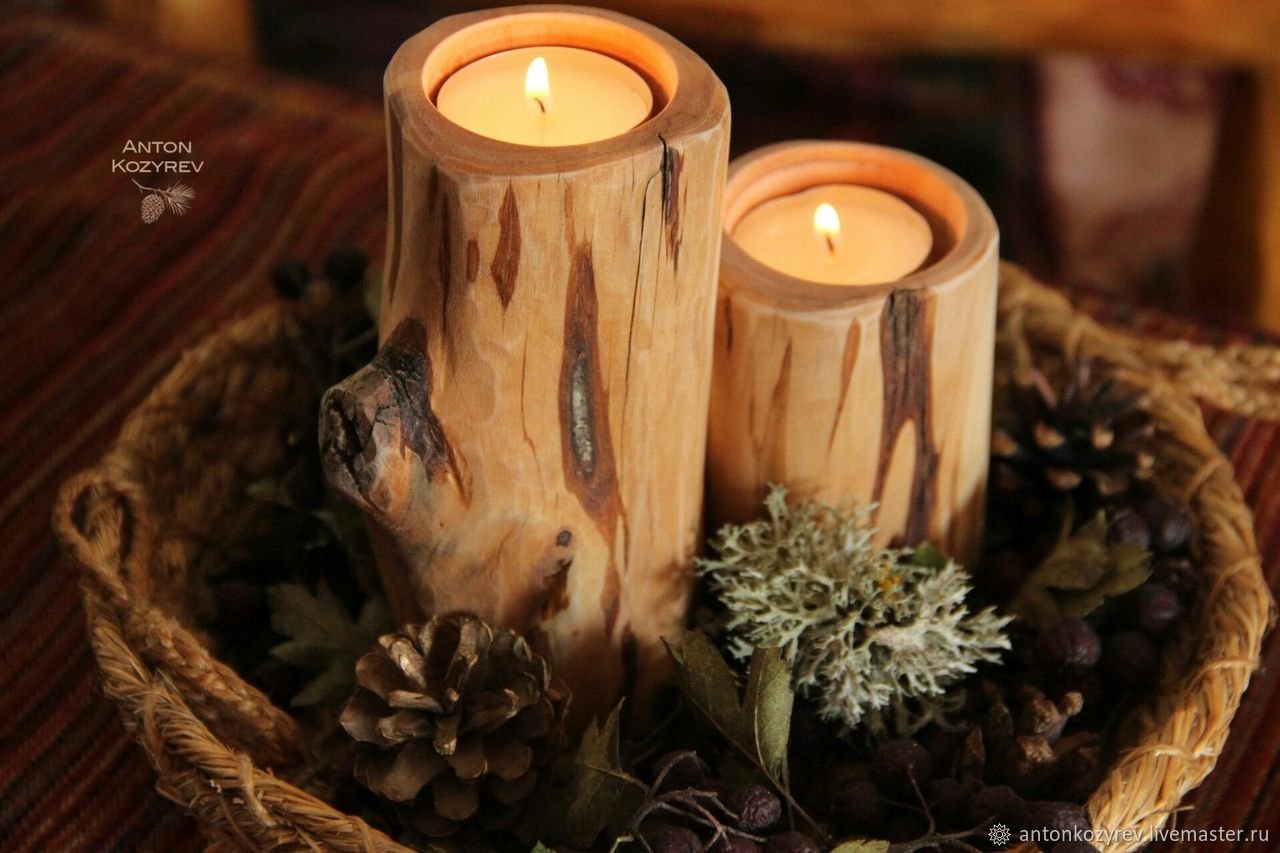 Деревянные подсвечники в интерьере