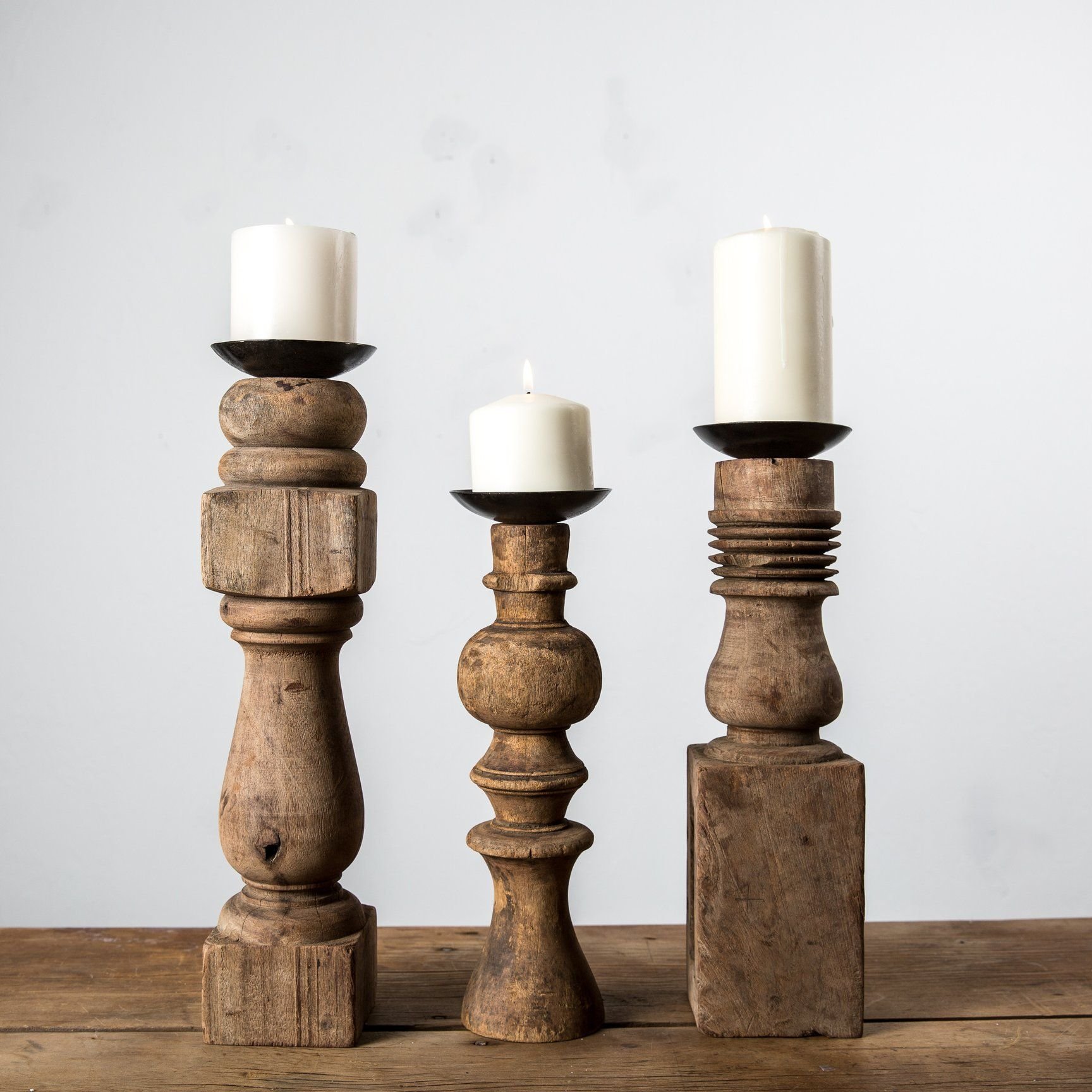 Antique Carved 3 Pillar Candle Holder