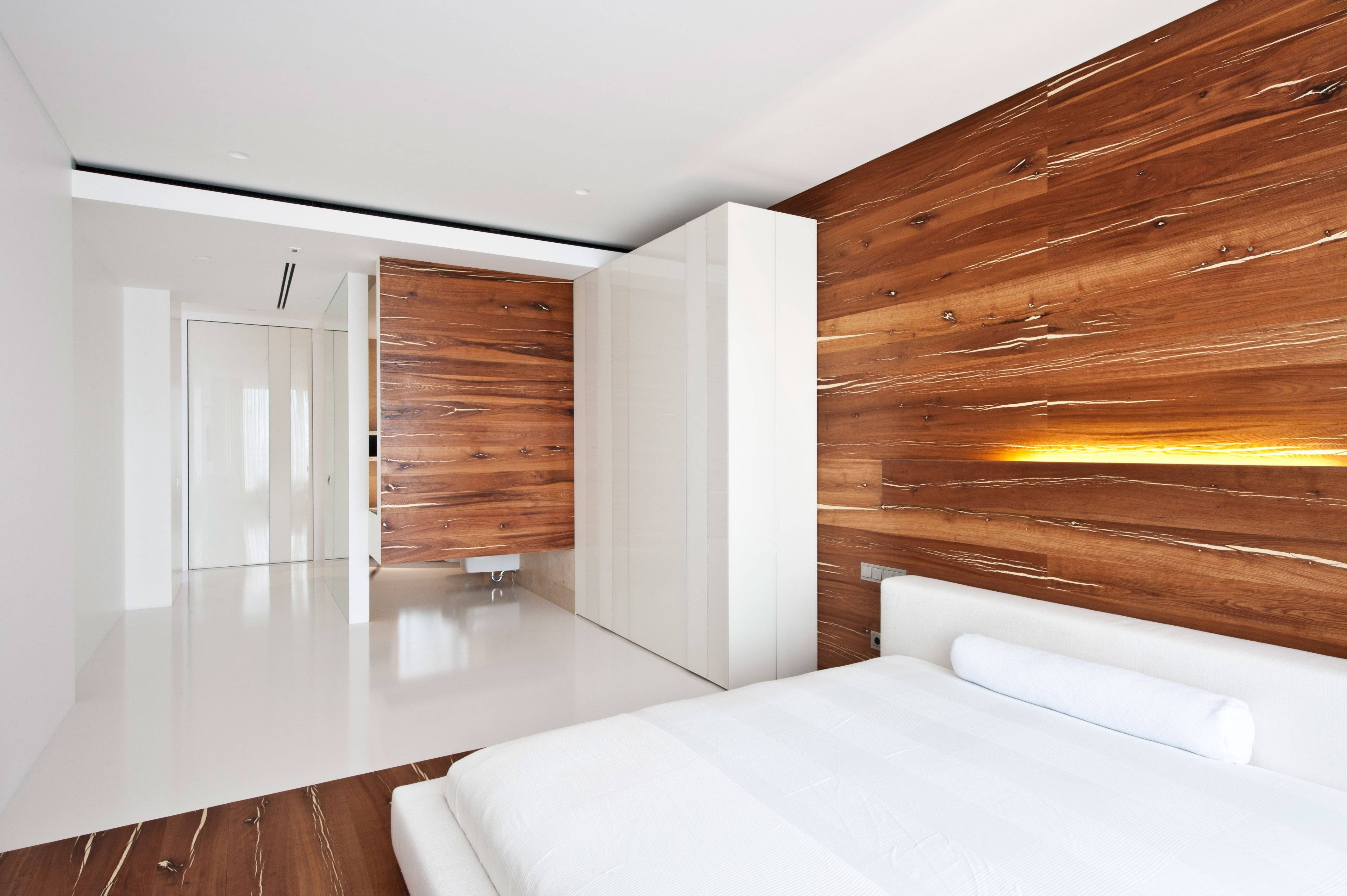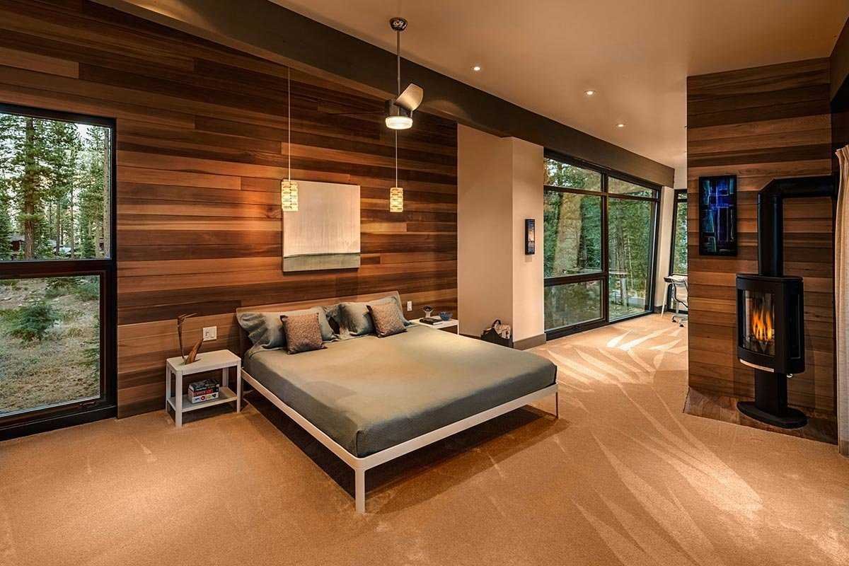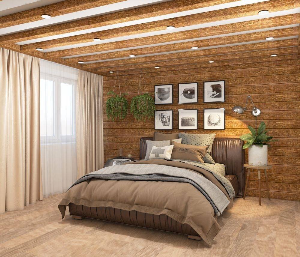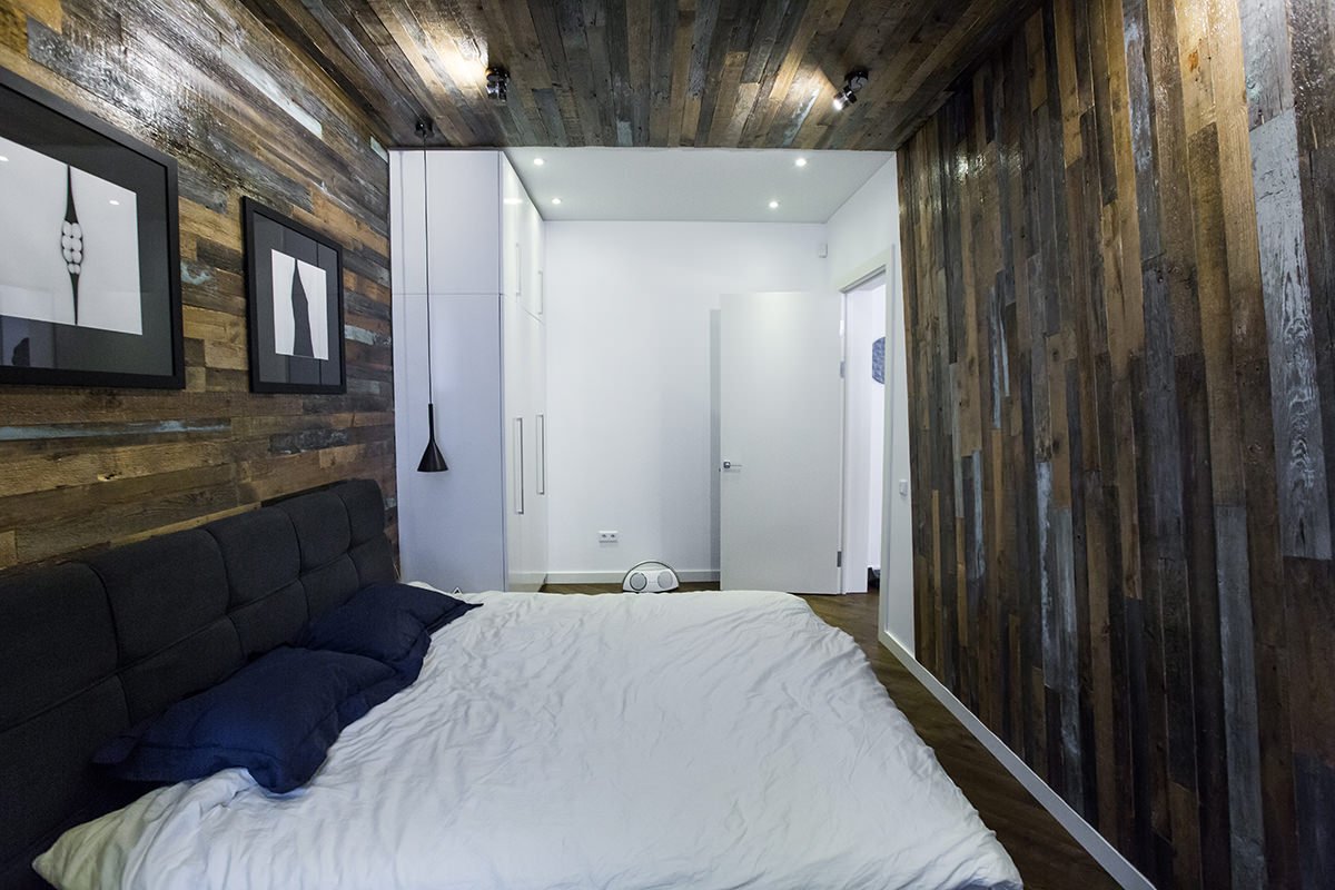 Деревянная стена в спальне