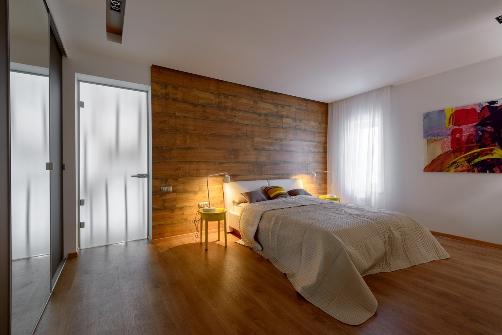 Ламинат на стене в спальне