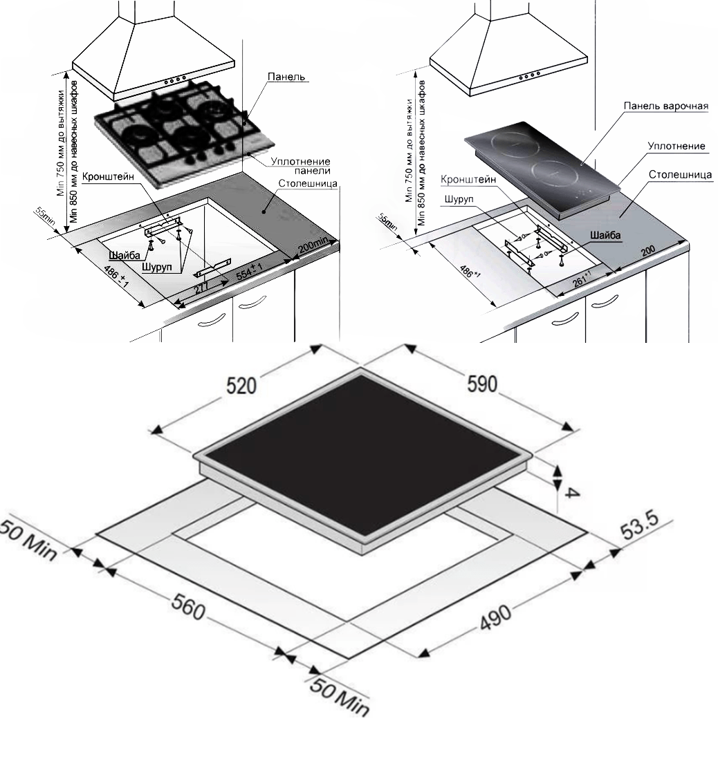 Кухонный гарнитур с варочной панелью и духовым шкафом