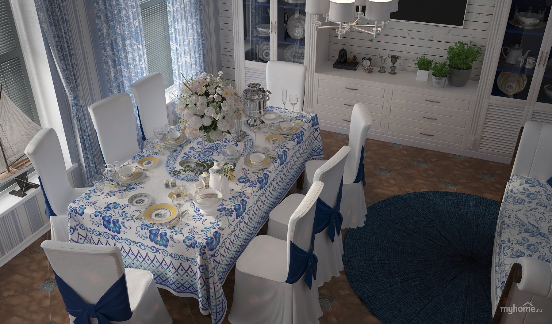 Интерьер дома в стиле Гжель