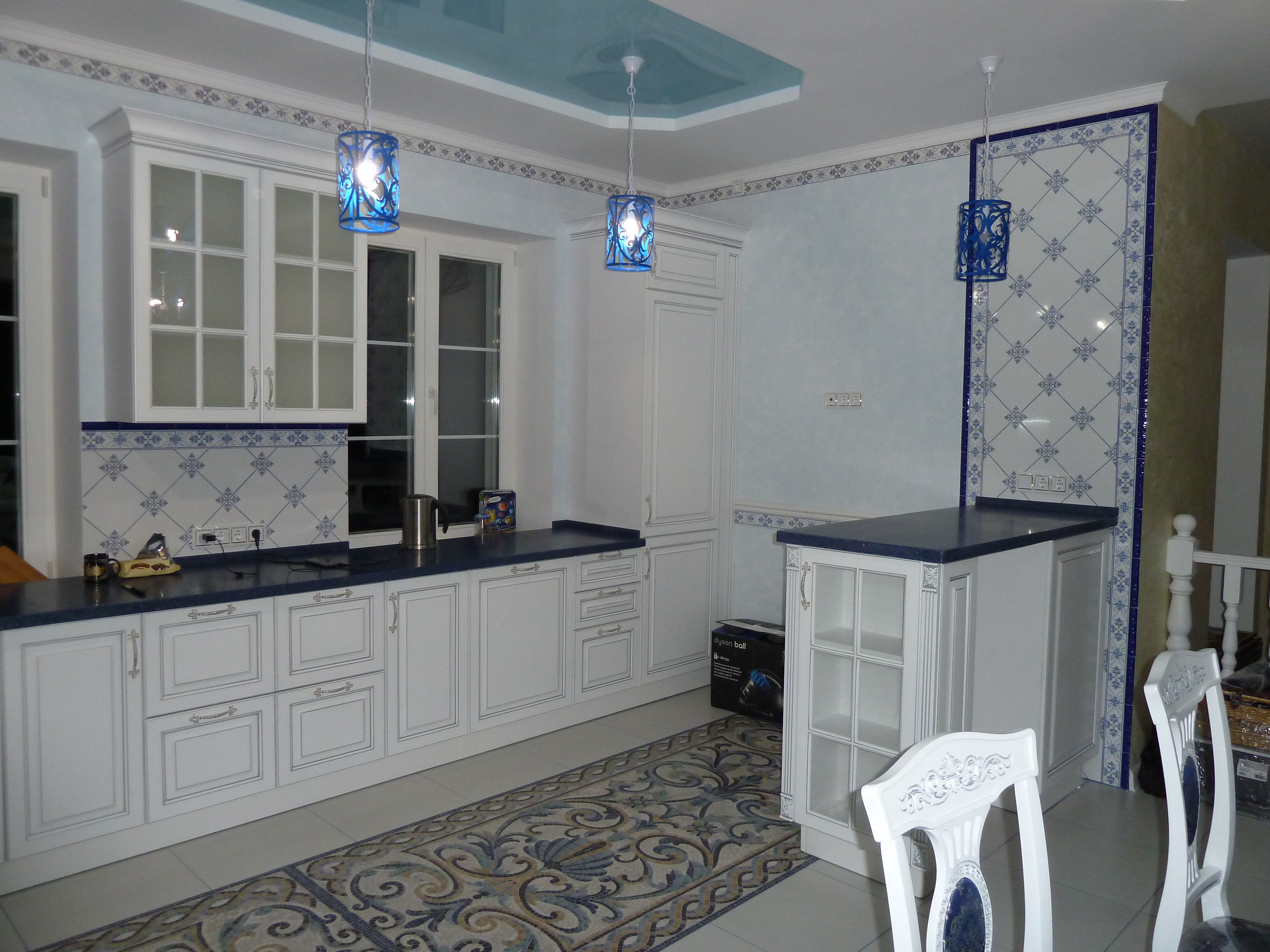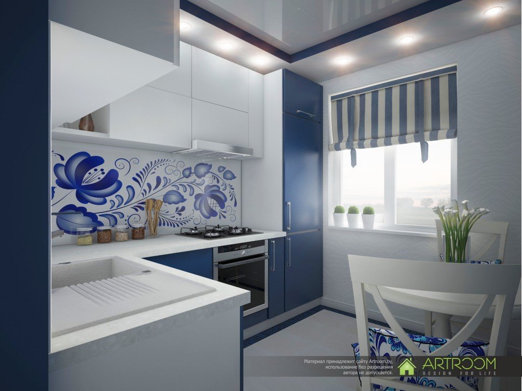 Кухня гостиная в стиле Гжель