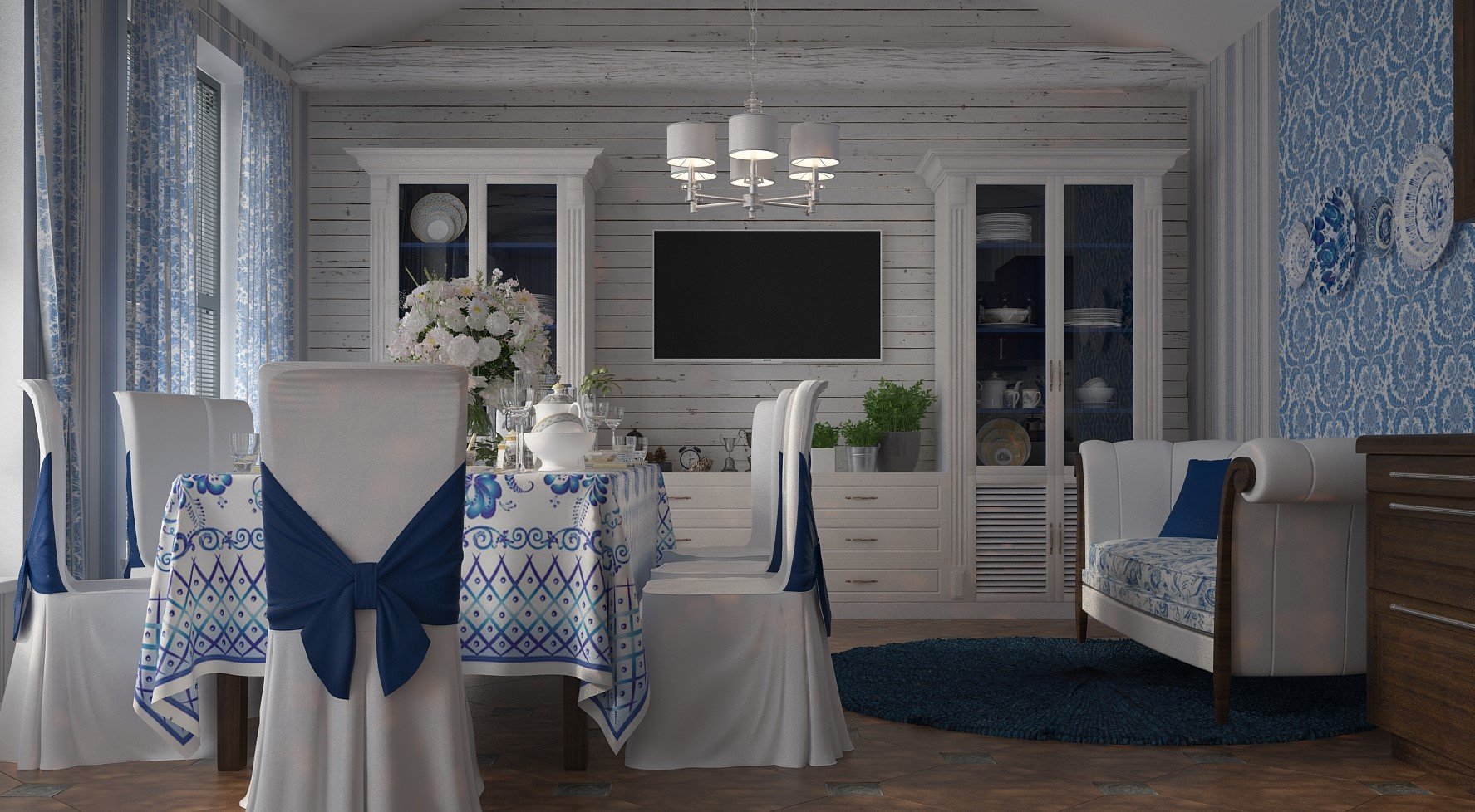 Комната в стиле Гжель