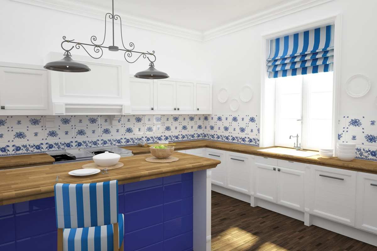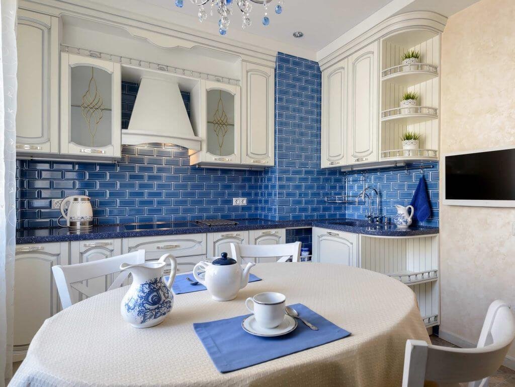 Гжель в интерьере кухни в стиле Прованс