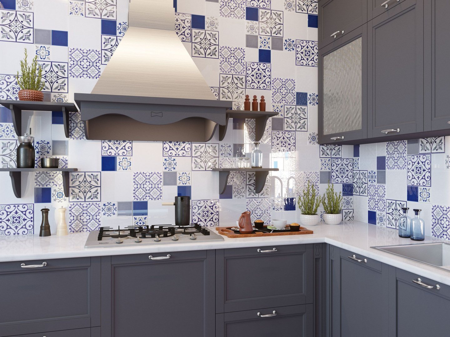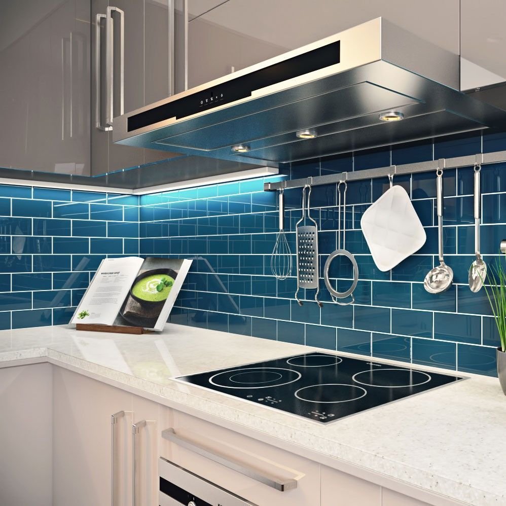 Синяя плитка на кухне