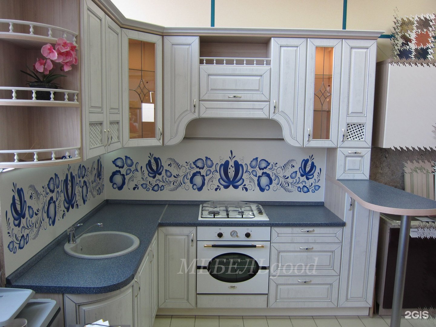 Кухня в русском стиле Гжель