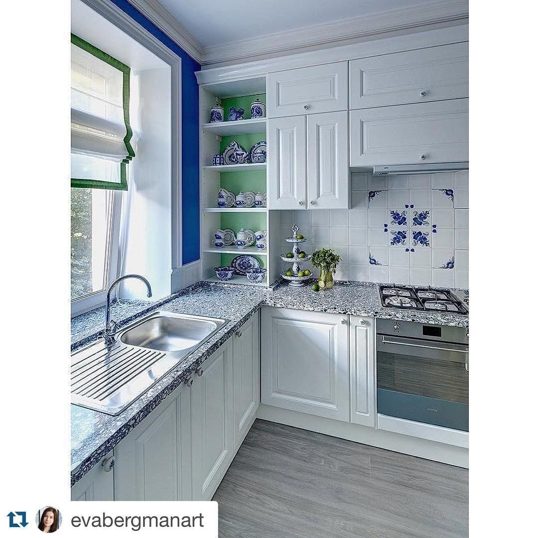 Гжель в интерьере кухни