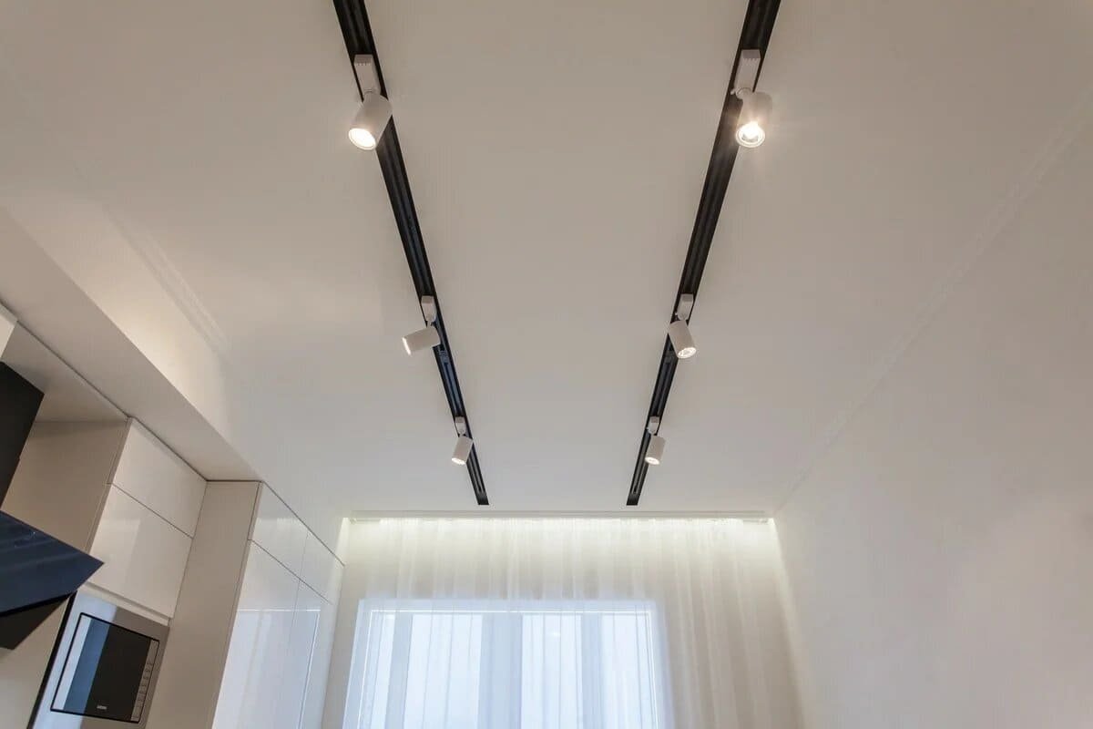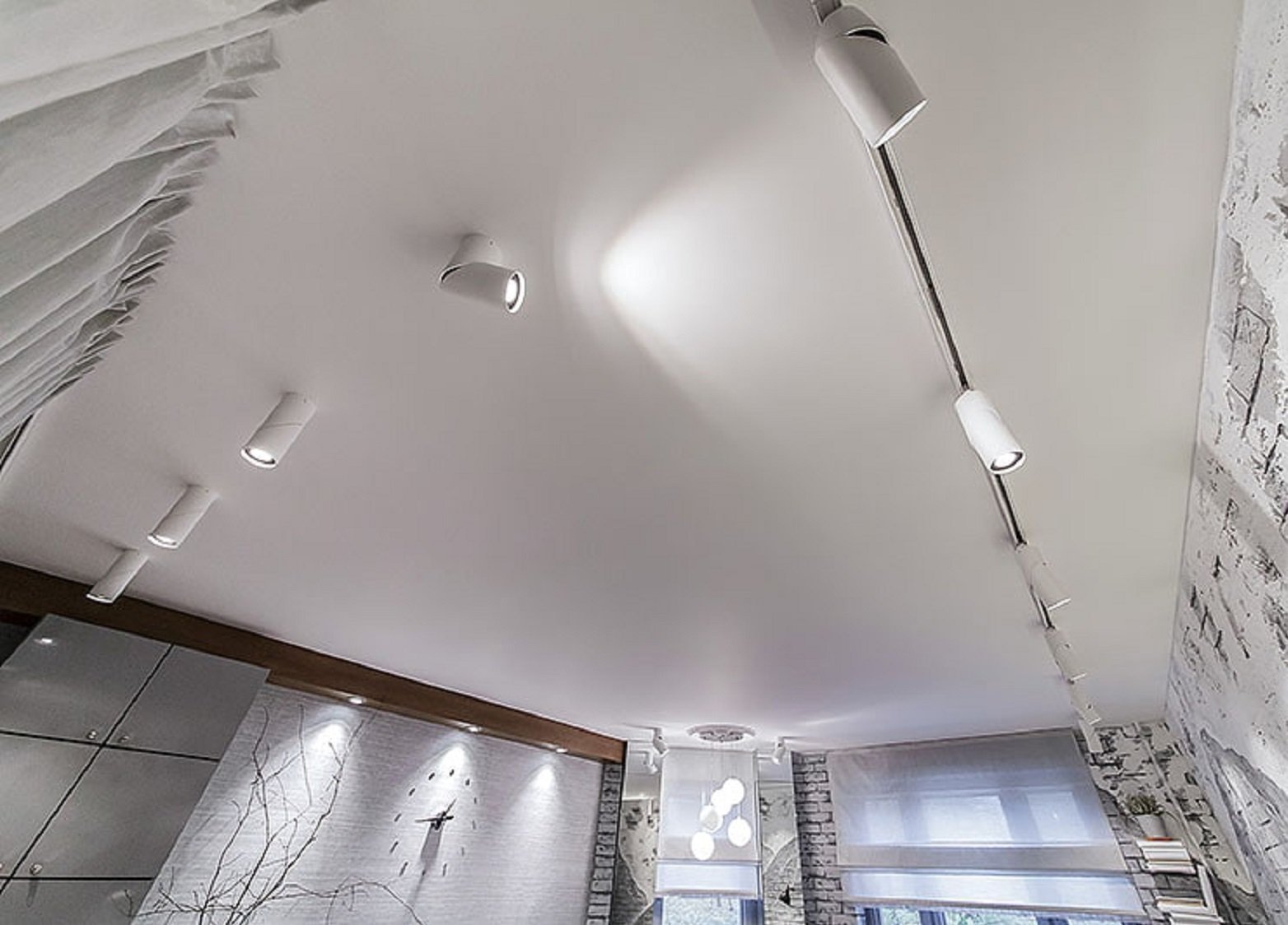 Комментируют Трековые светильники на натяжном потолке в интерьере: