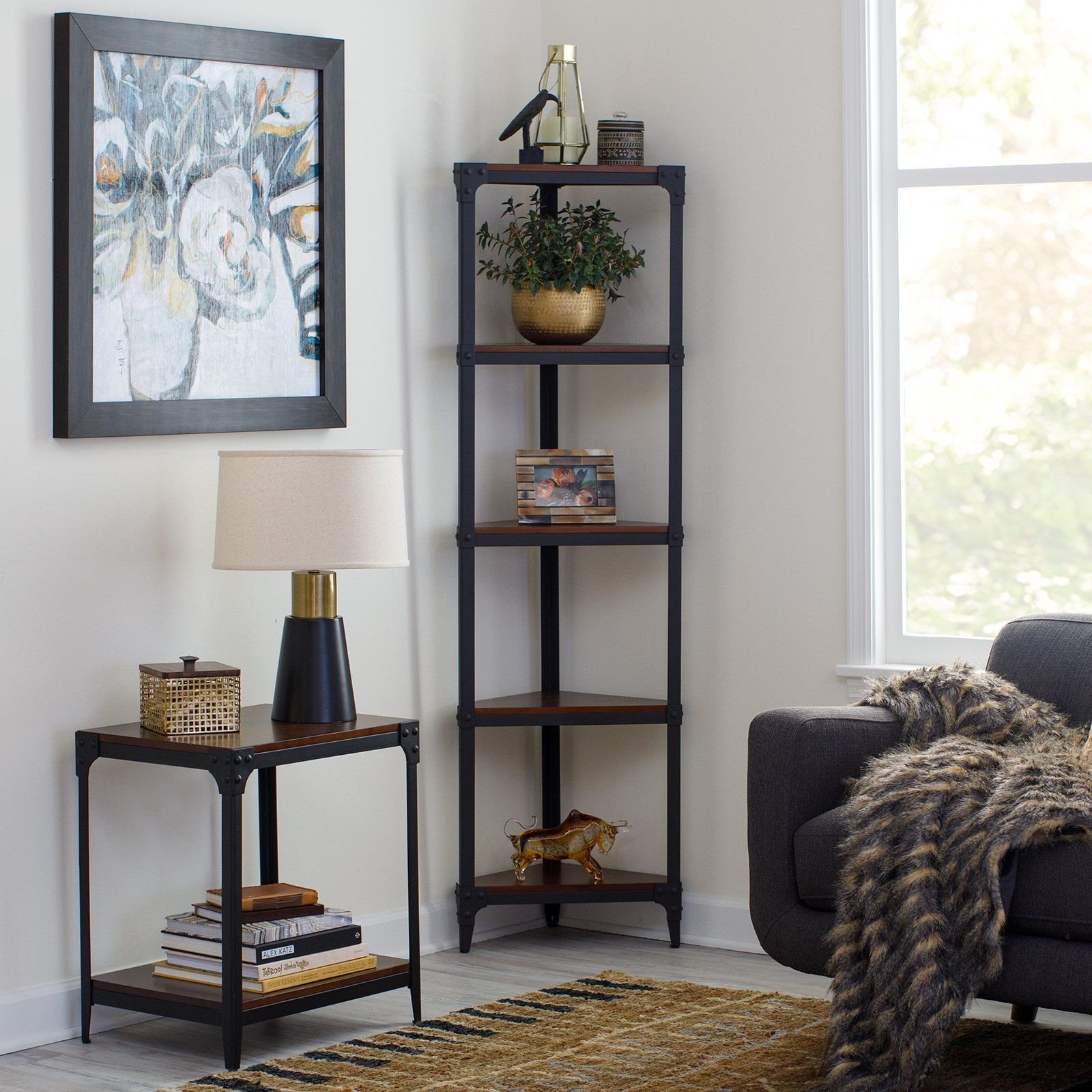 Угловой стеллаж в стиле лофт