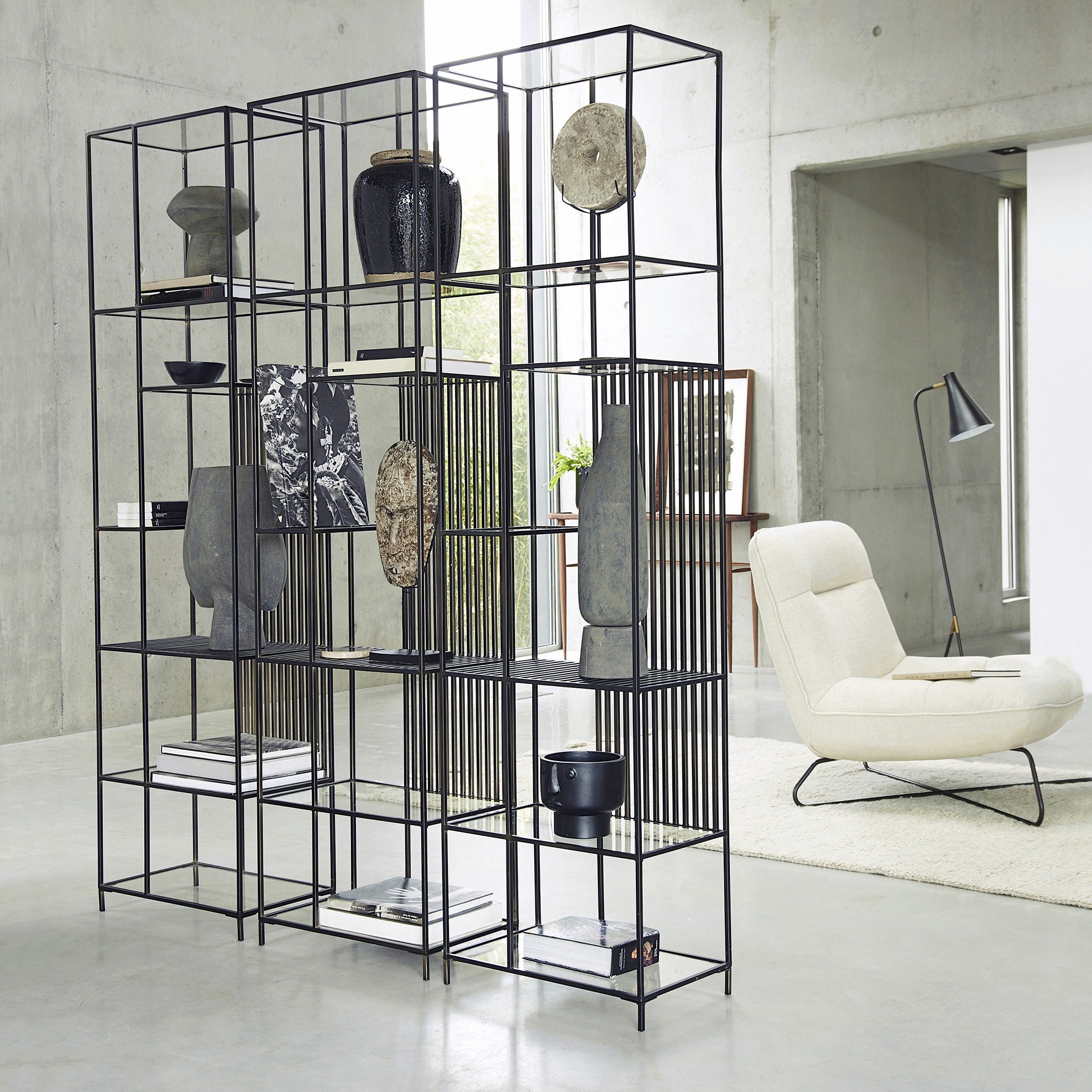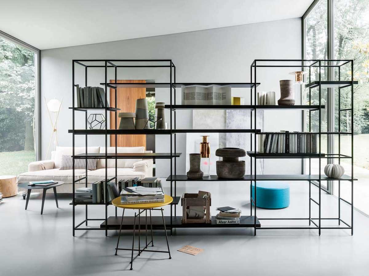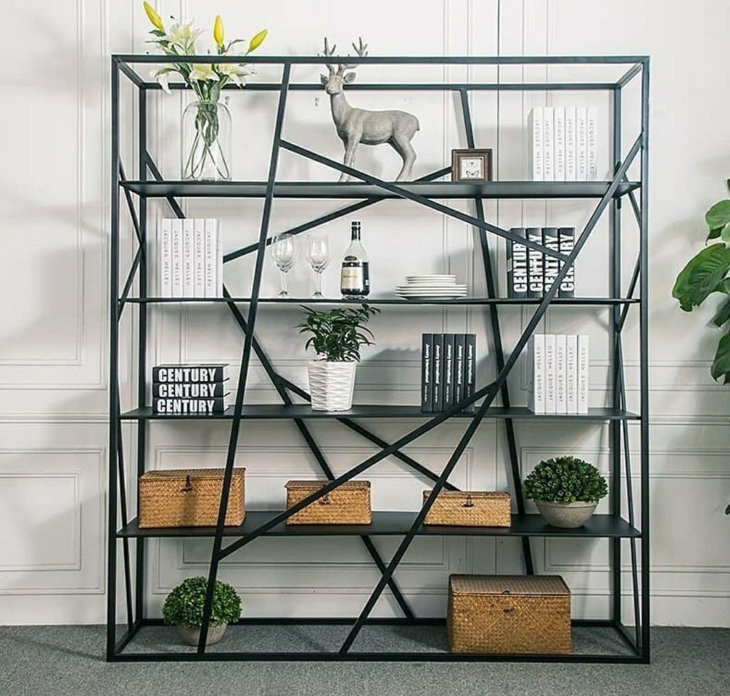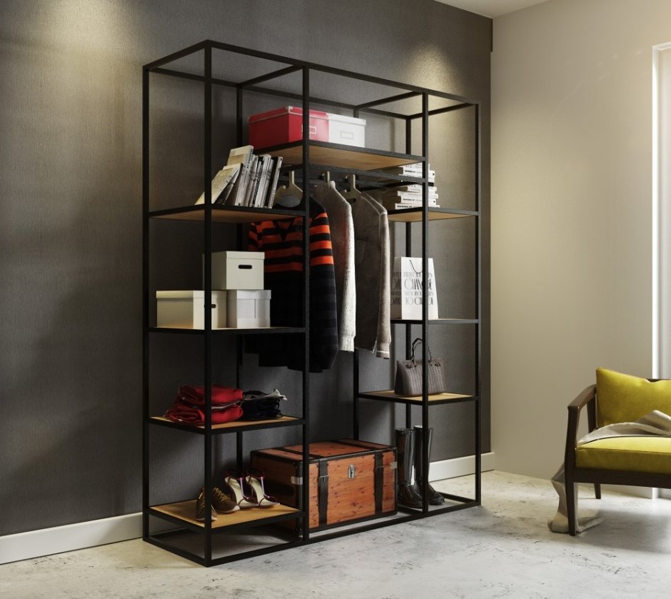 Металлический стеллаж в интерьере