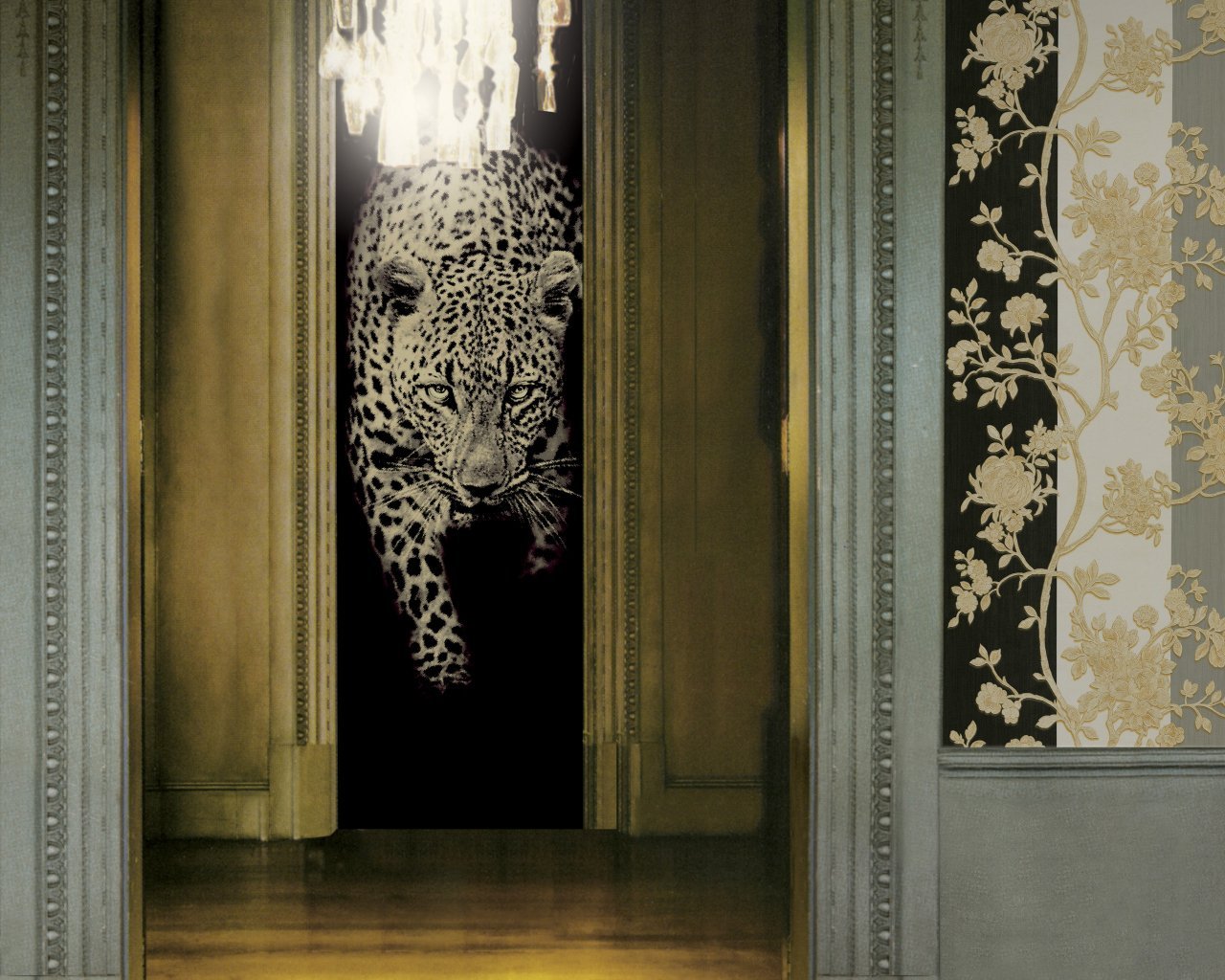 Обои Роберто Кавалли леопард в интерьере
