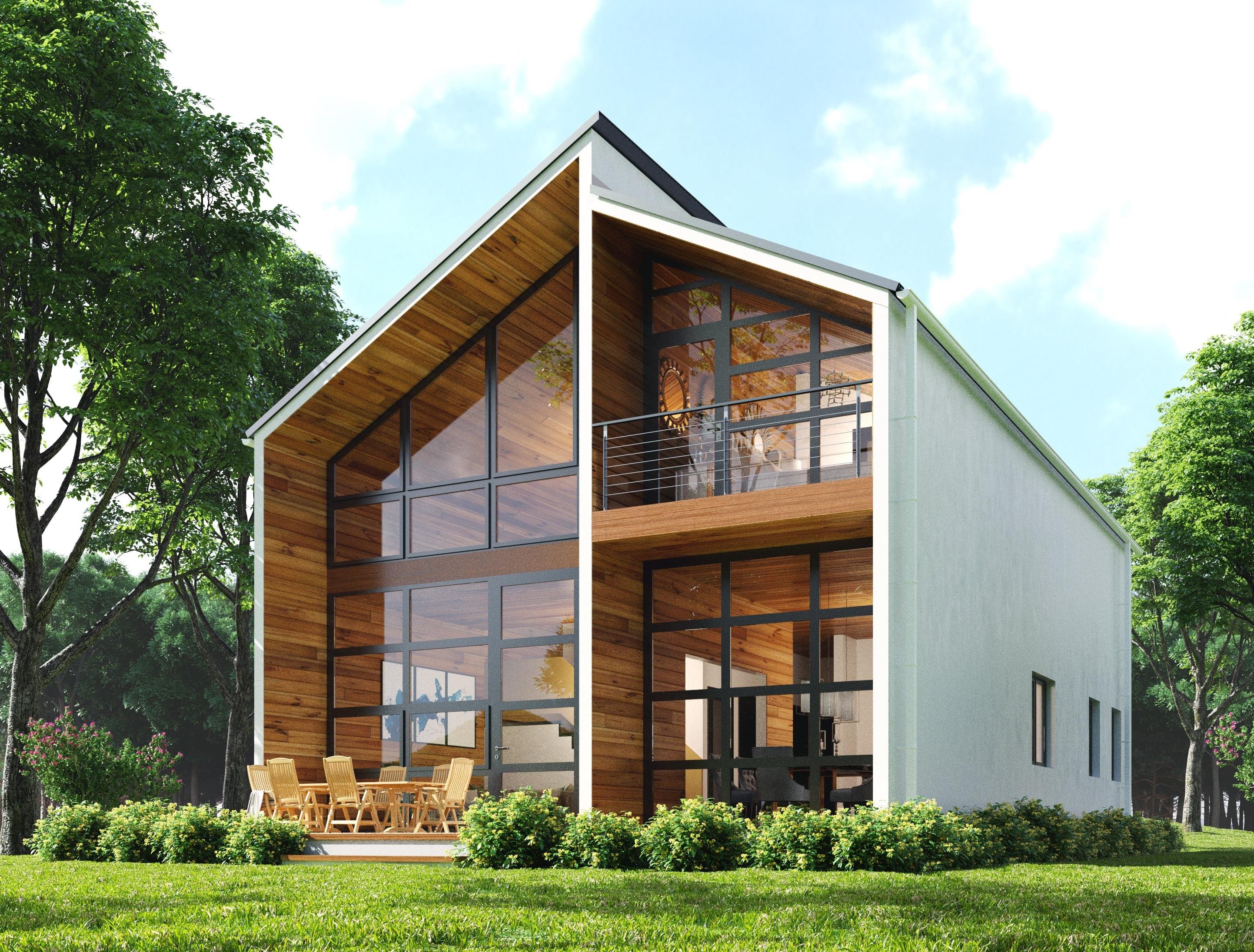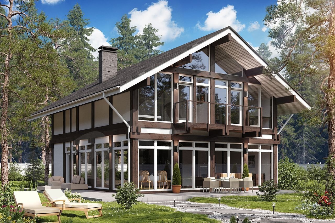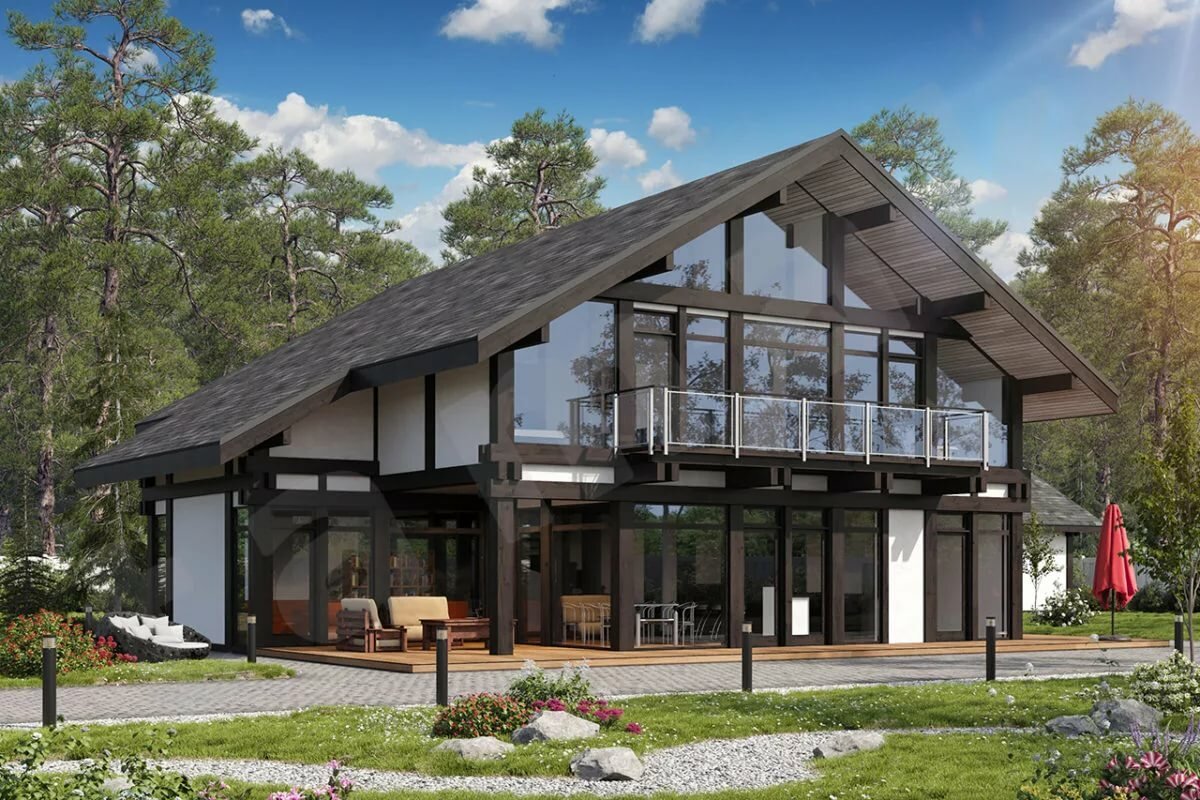 Каркасный дом с панорамными окнами двухэтажный