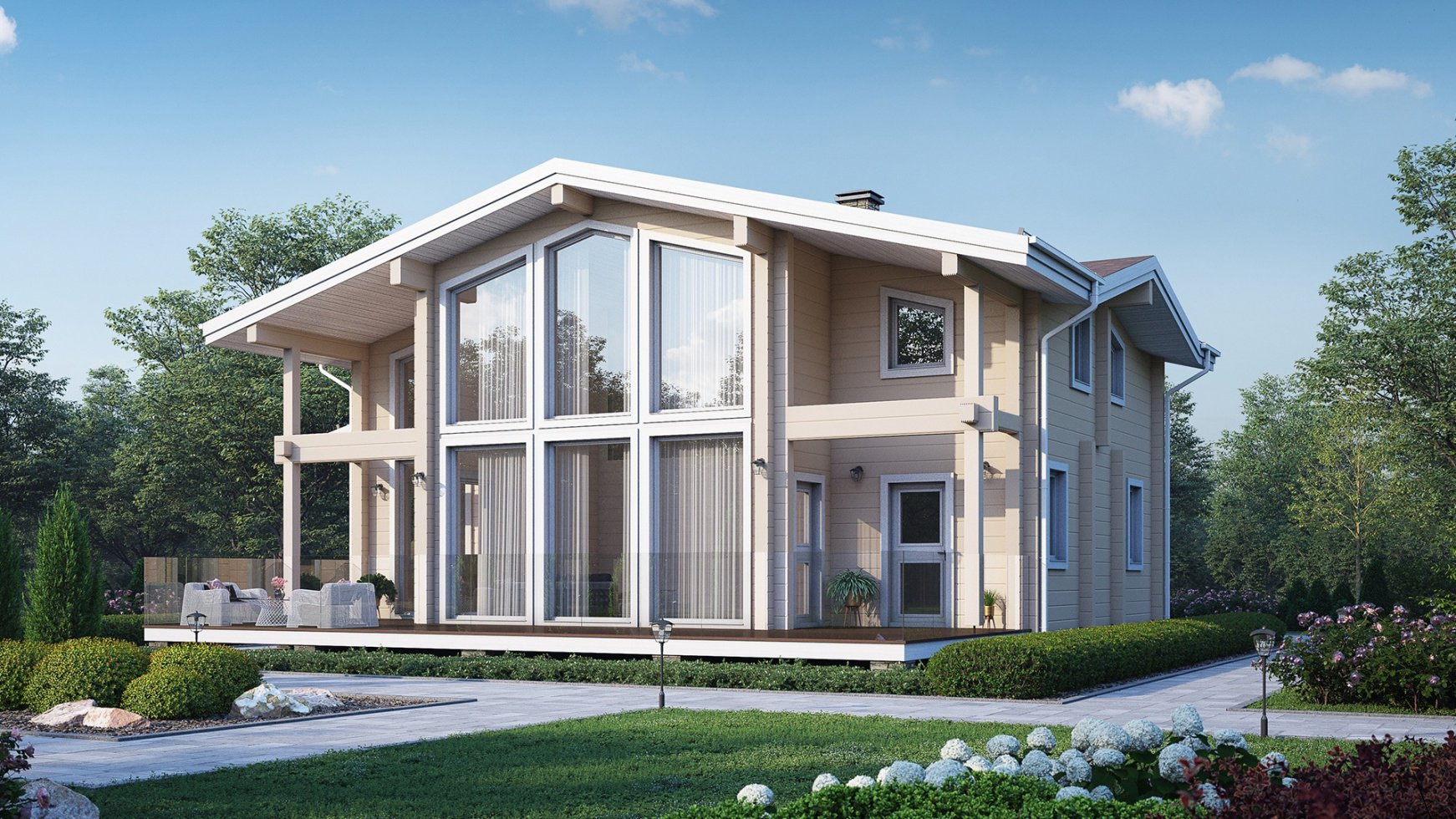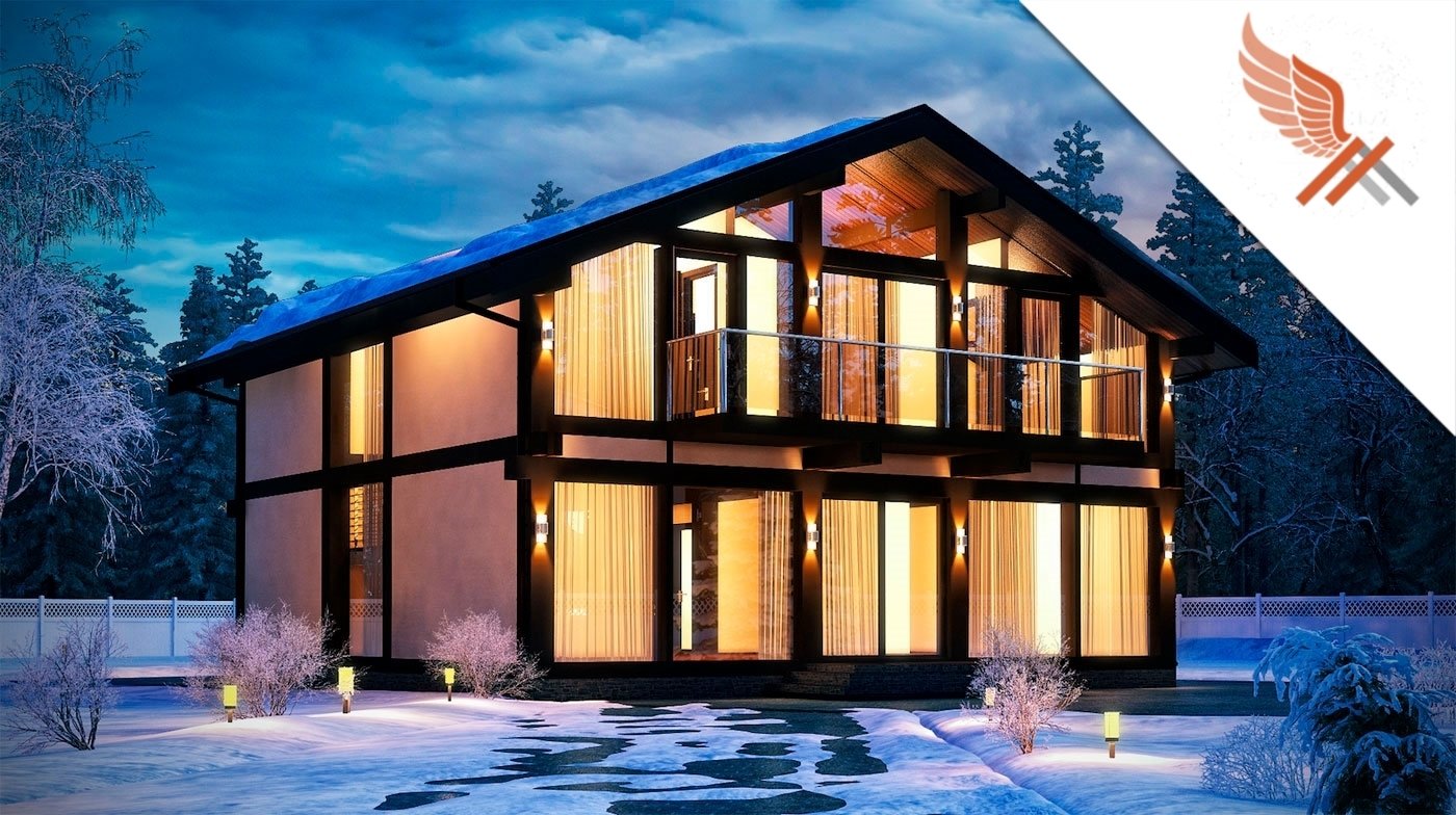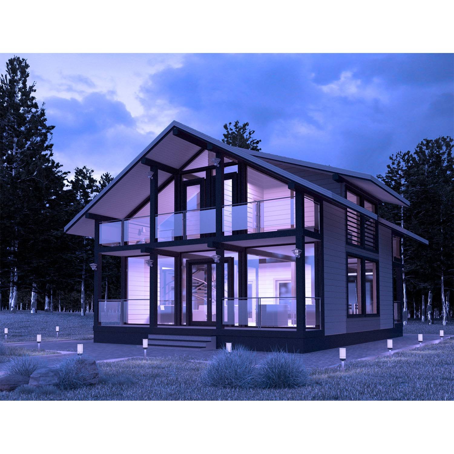 Каркасный дом с панорамными окнами двухэтажный
