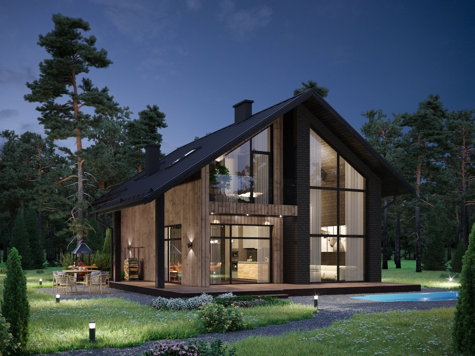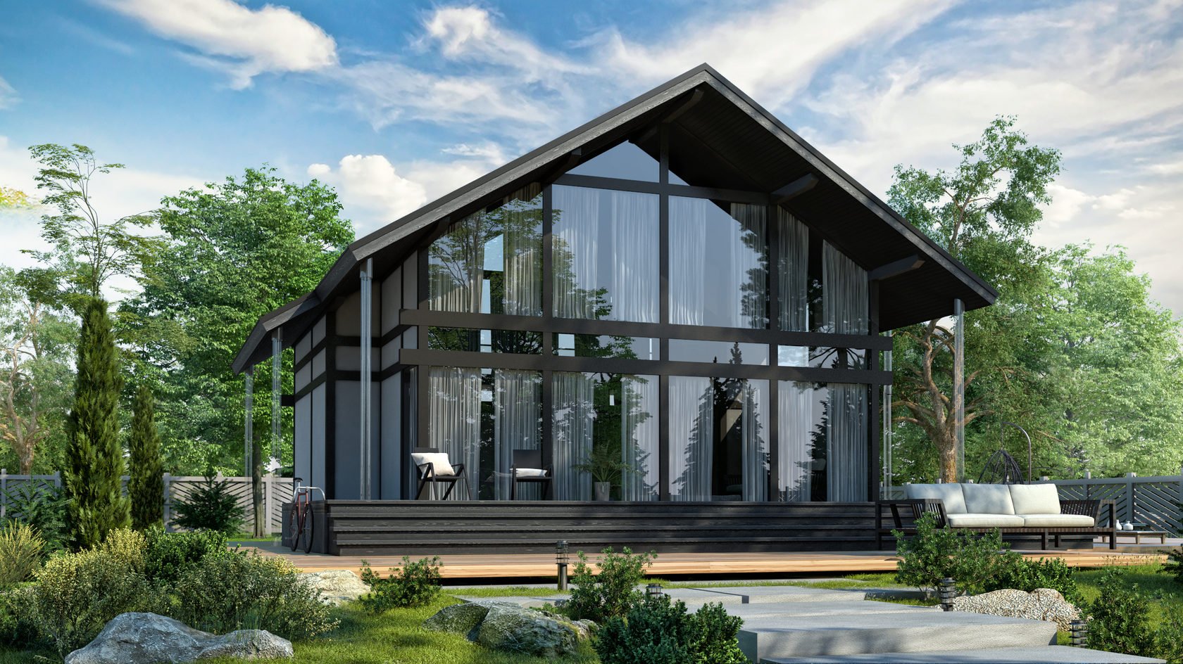Каркасный дом с панорамными окнами