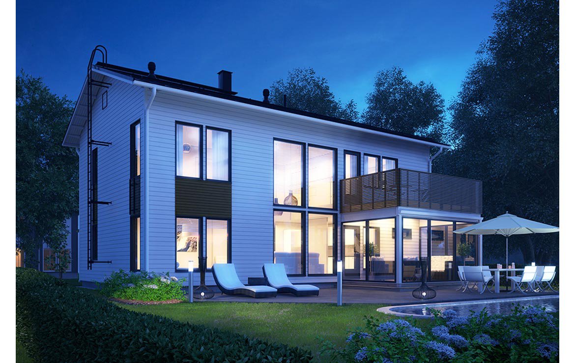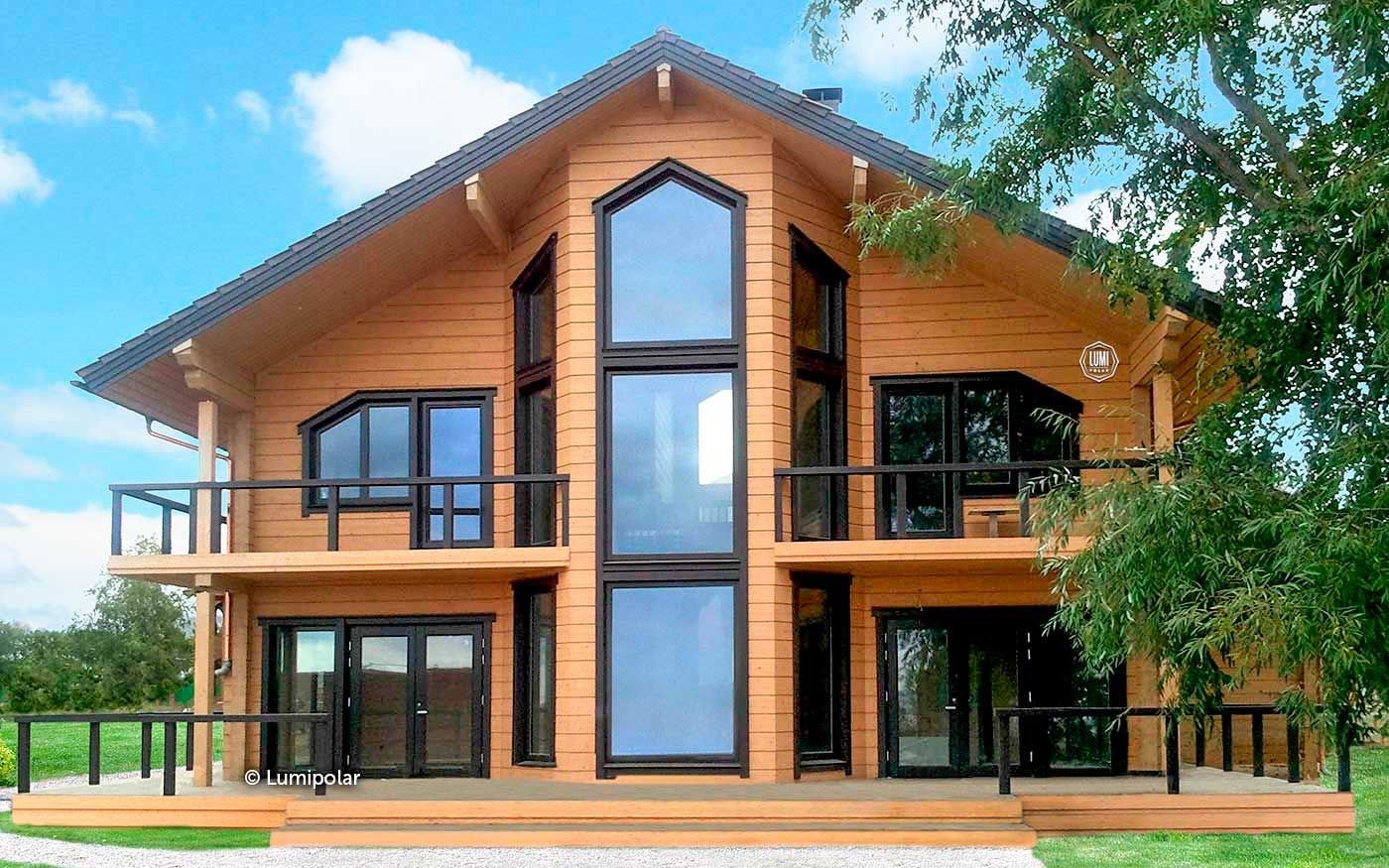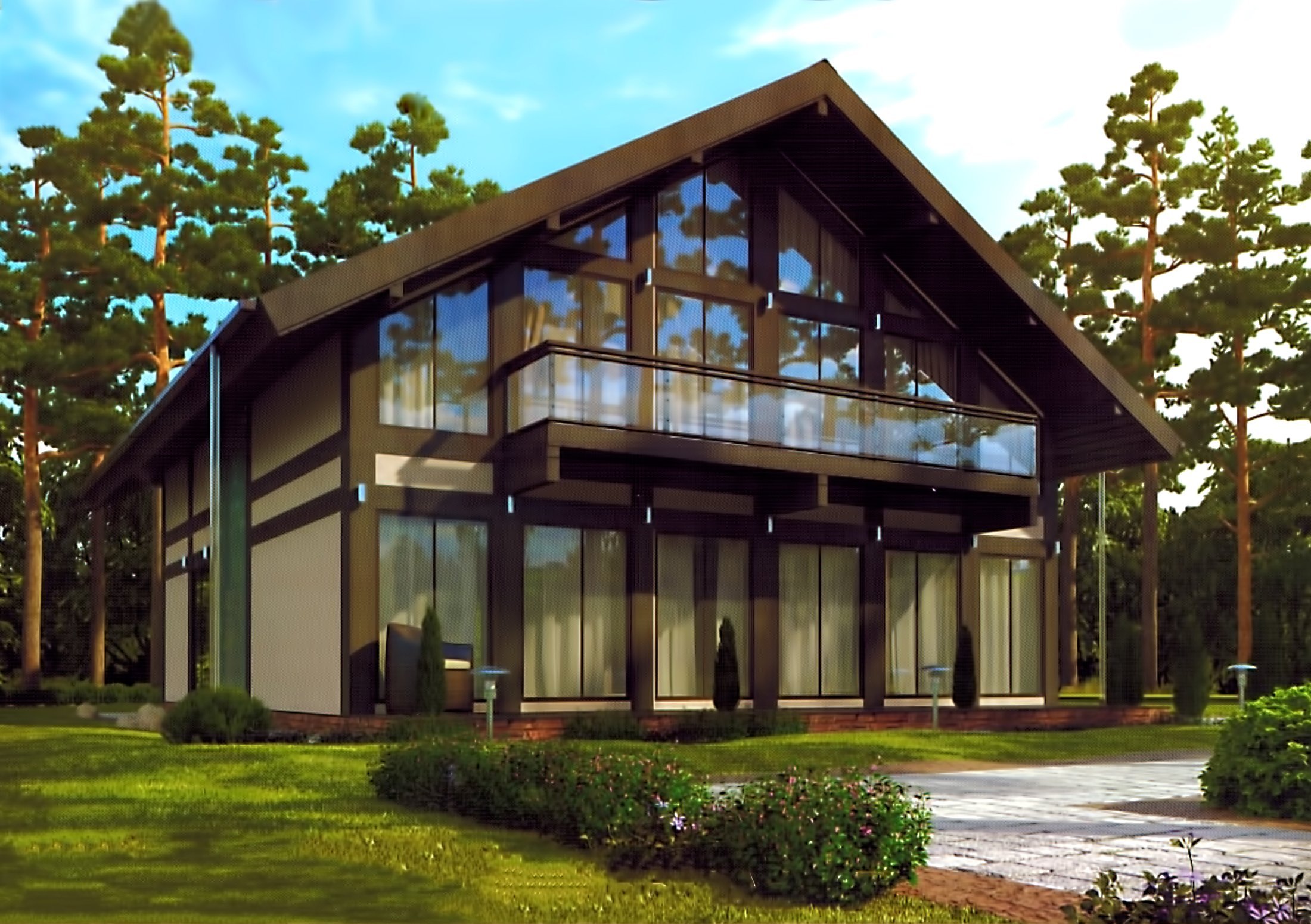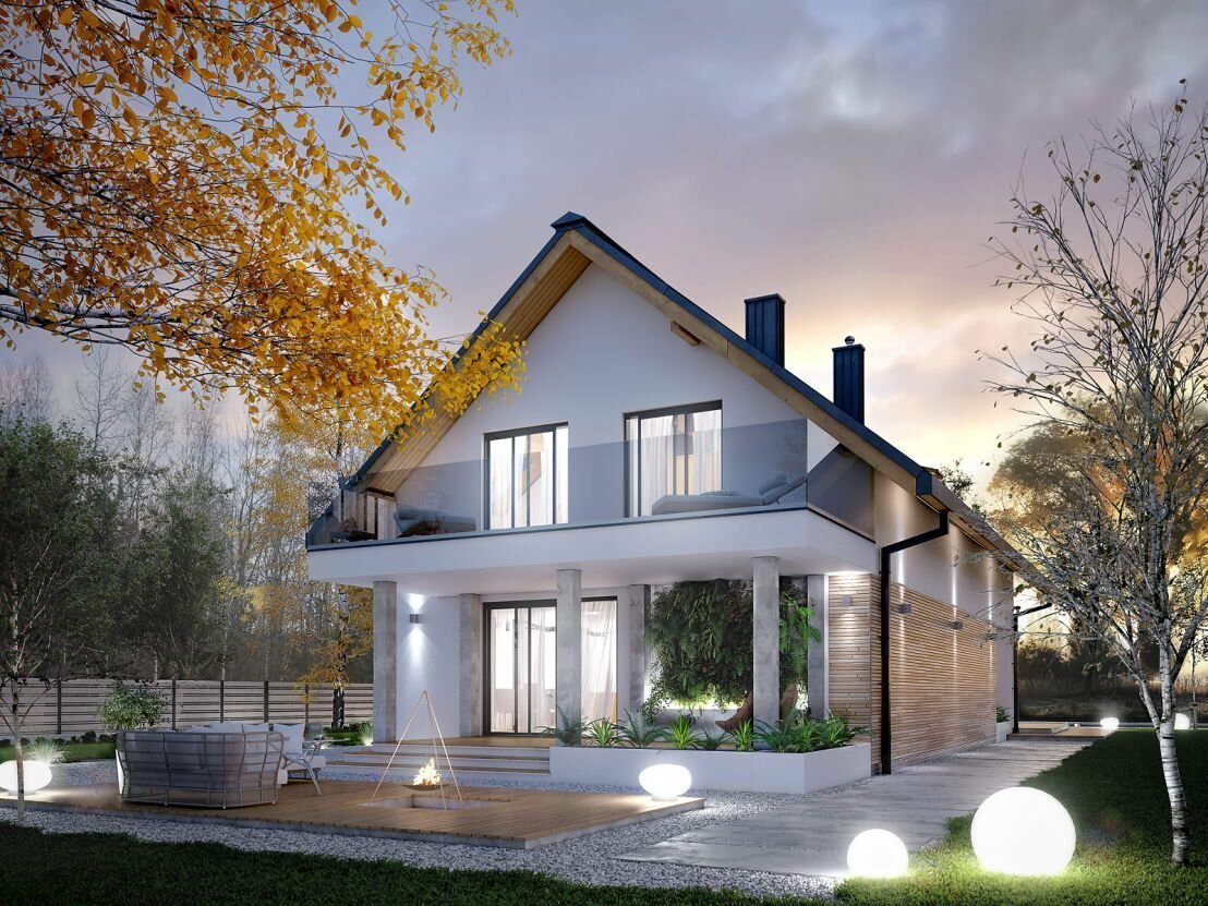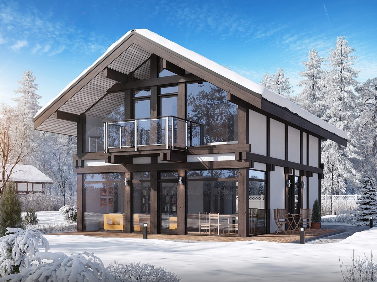 Дом каркасник с балконами и панорамными окнами