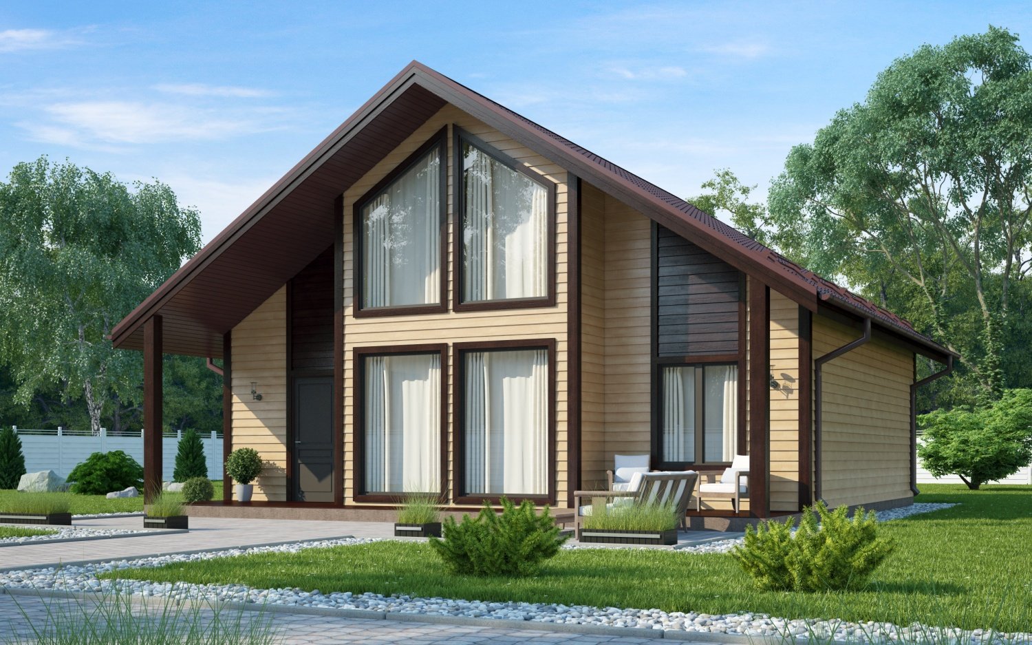 Каркасный дом с большими окнами
