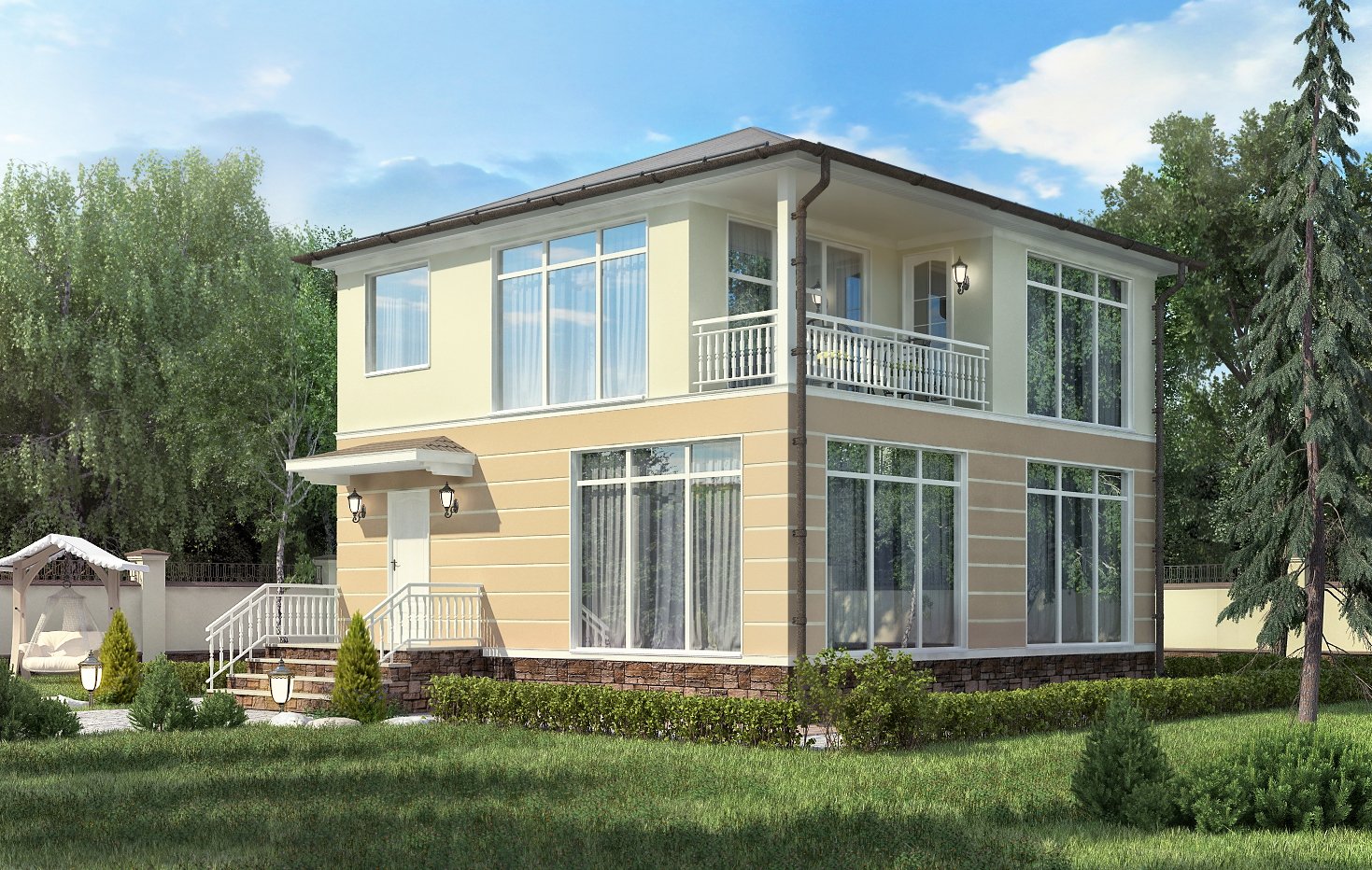 Дом с большими окнами двухэтажный