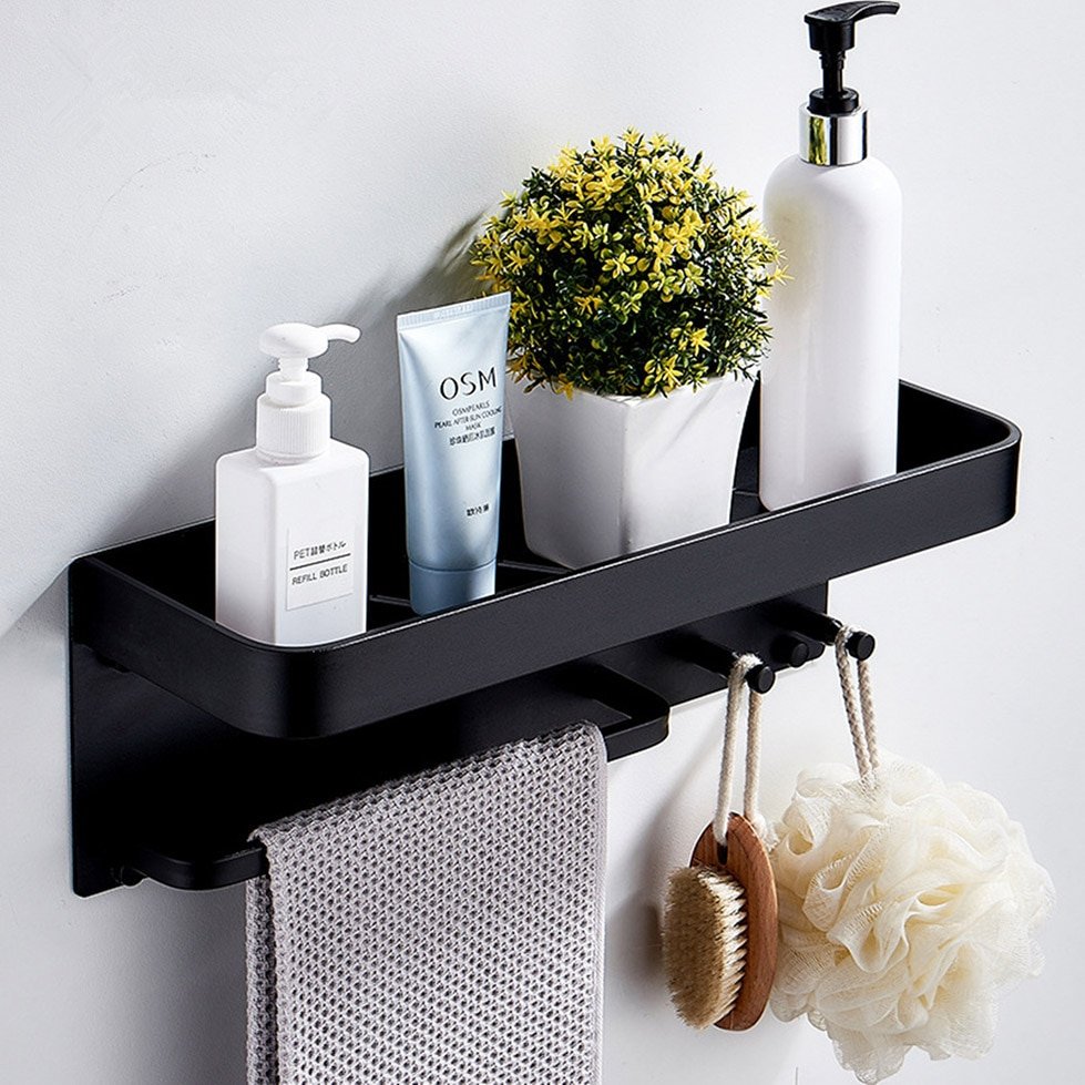 Полка в ванную черная
