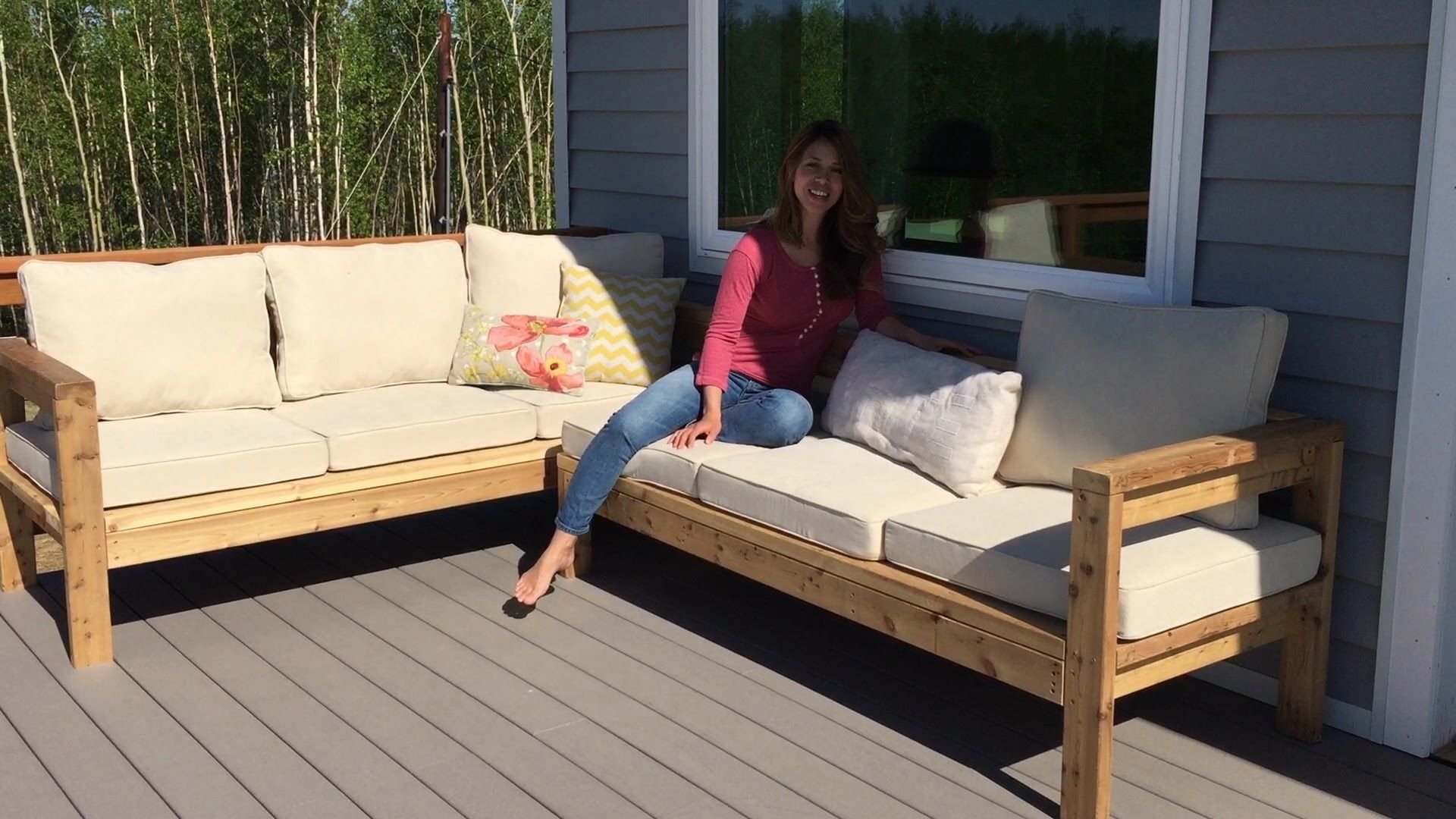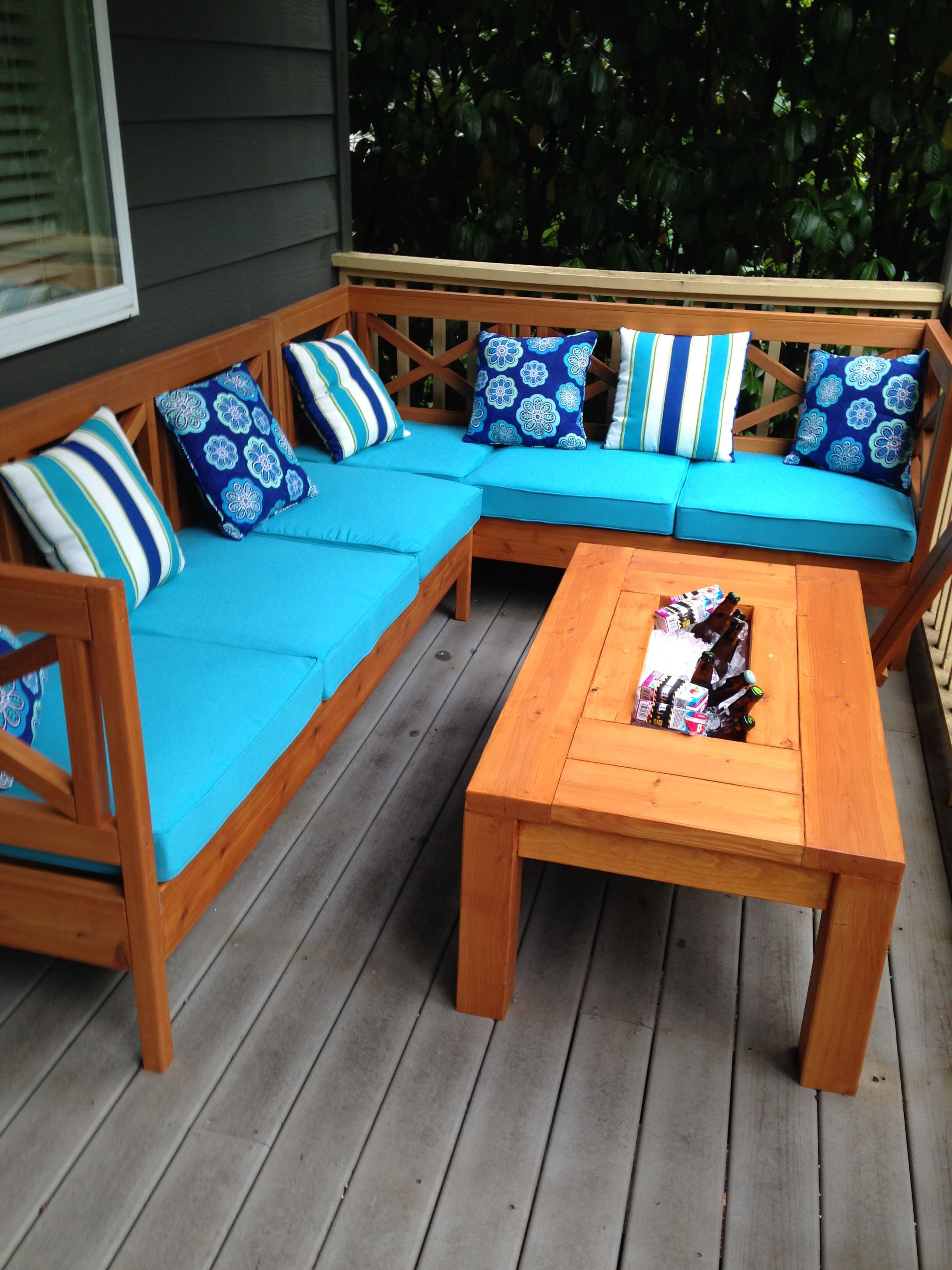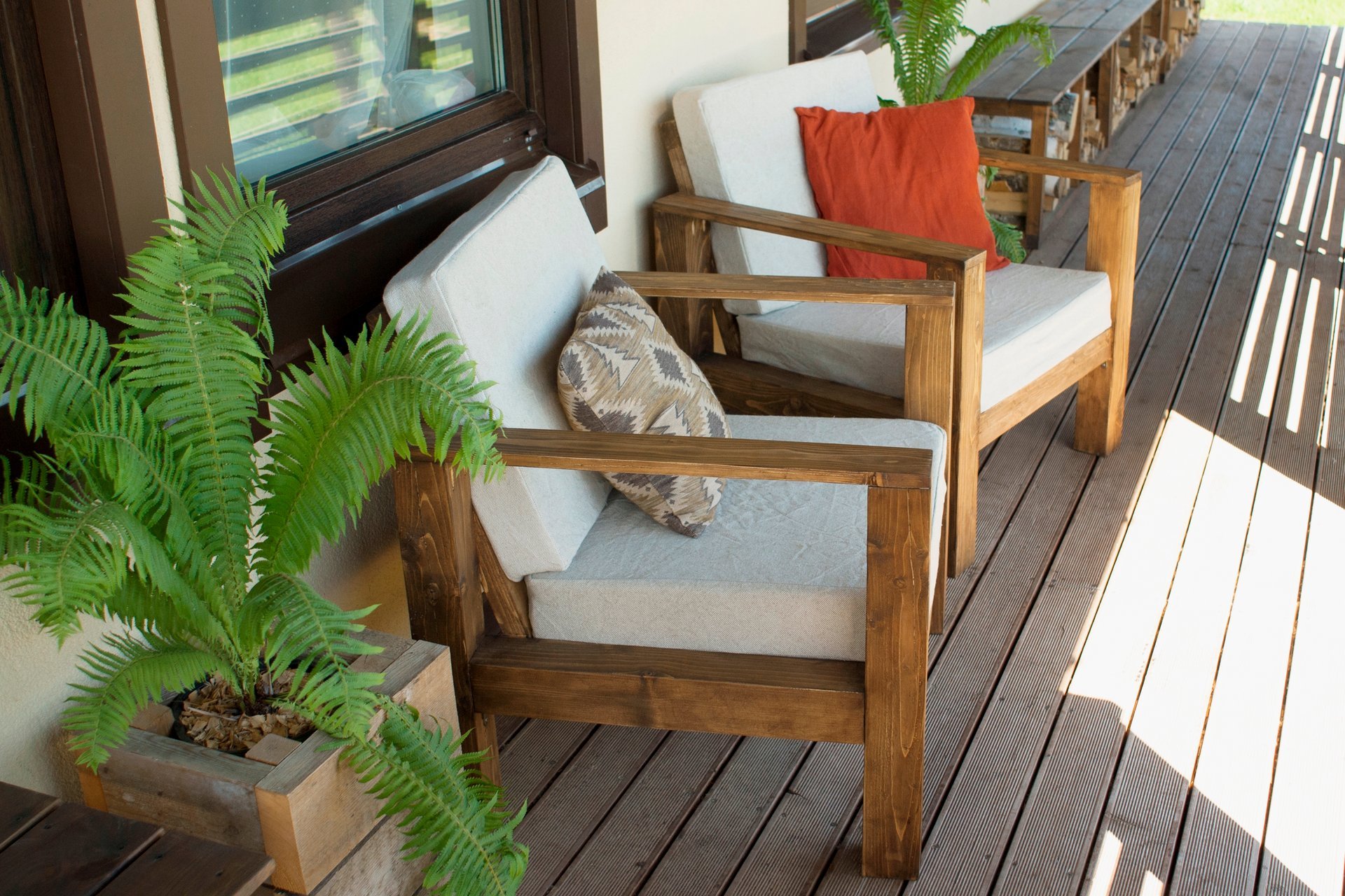 Деревянные диваны с подушками для террасы