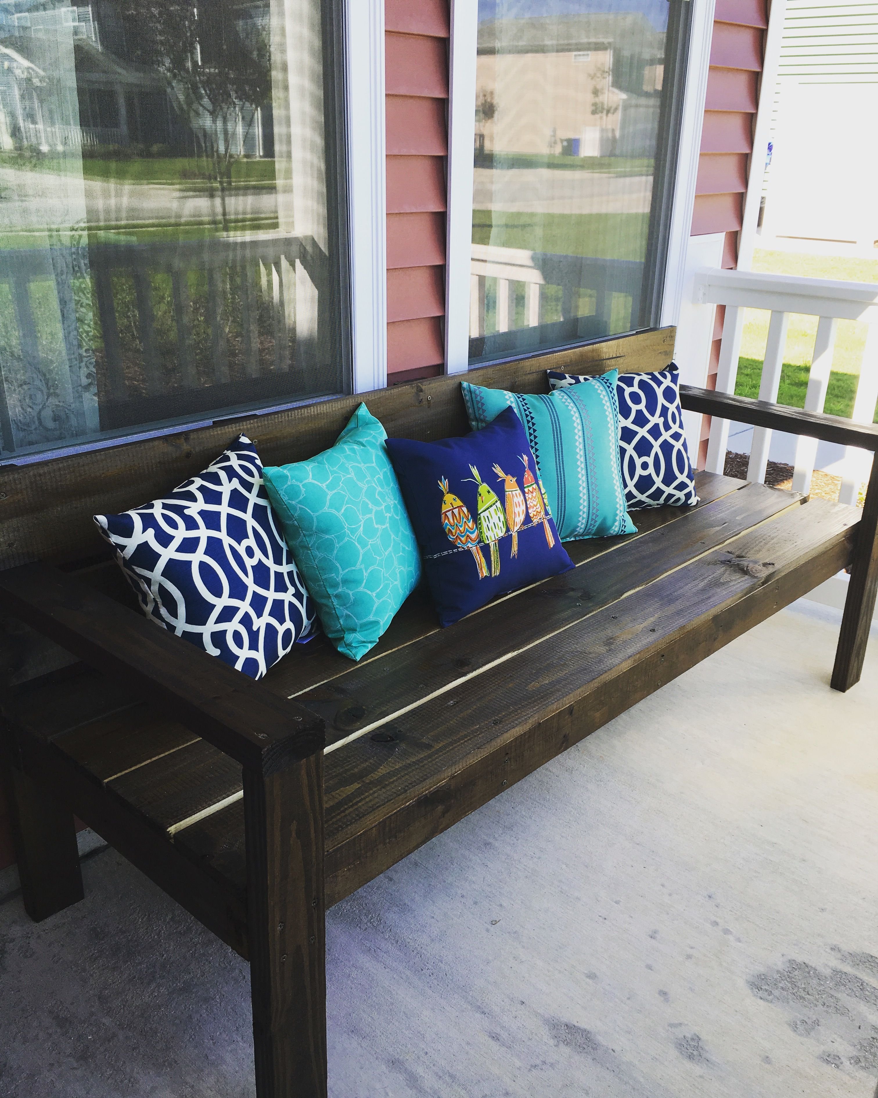 Скамейка с подушками на террасе